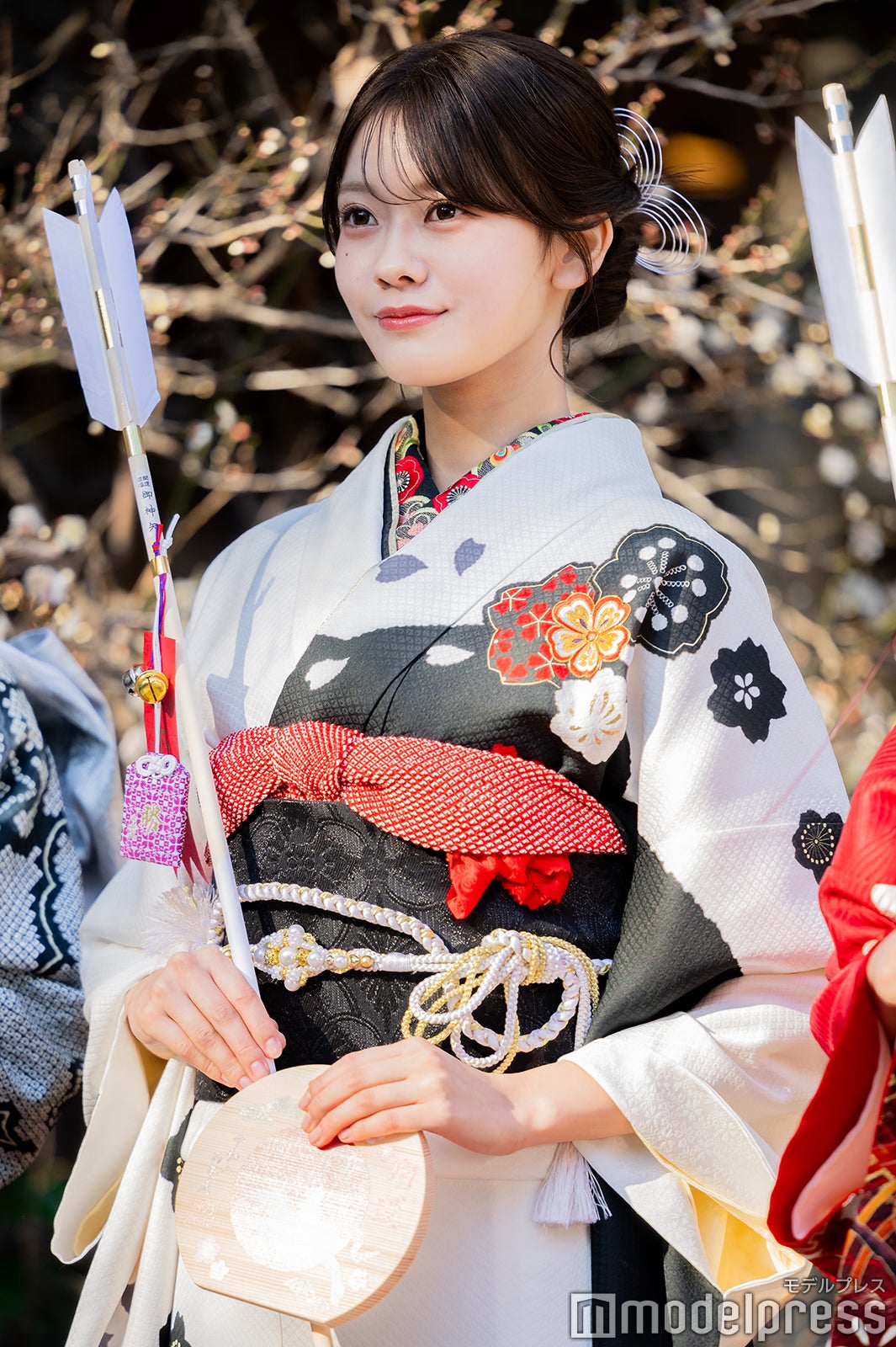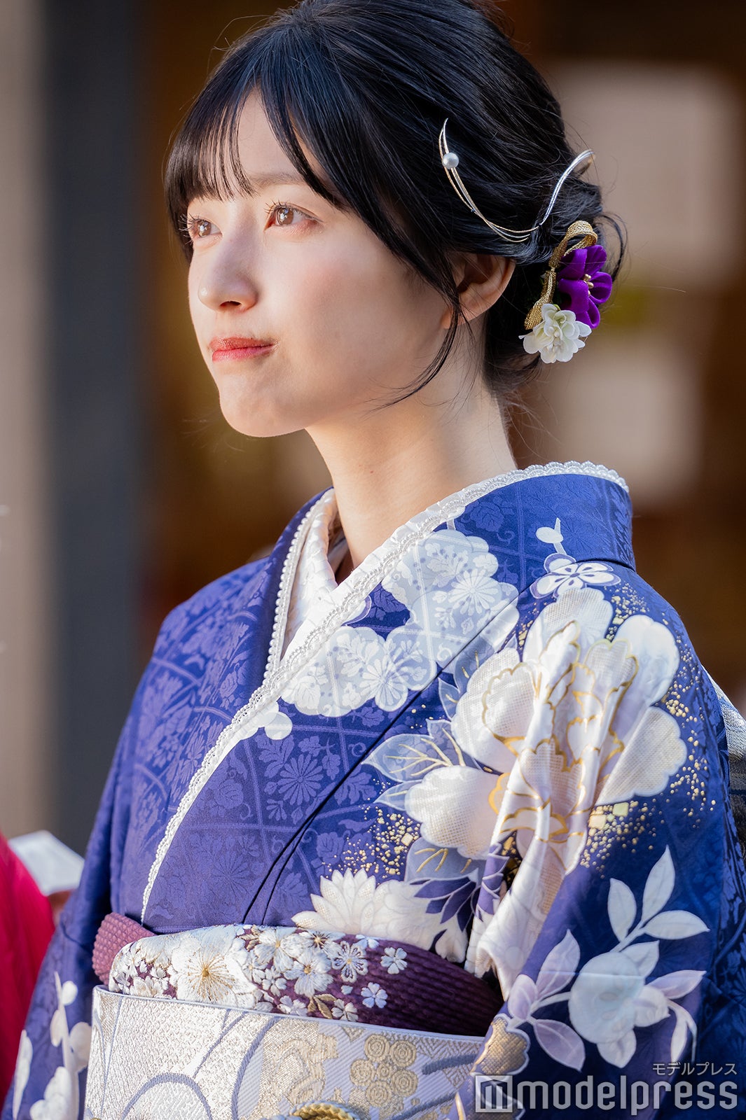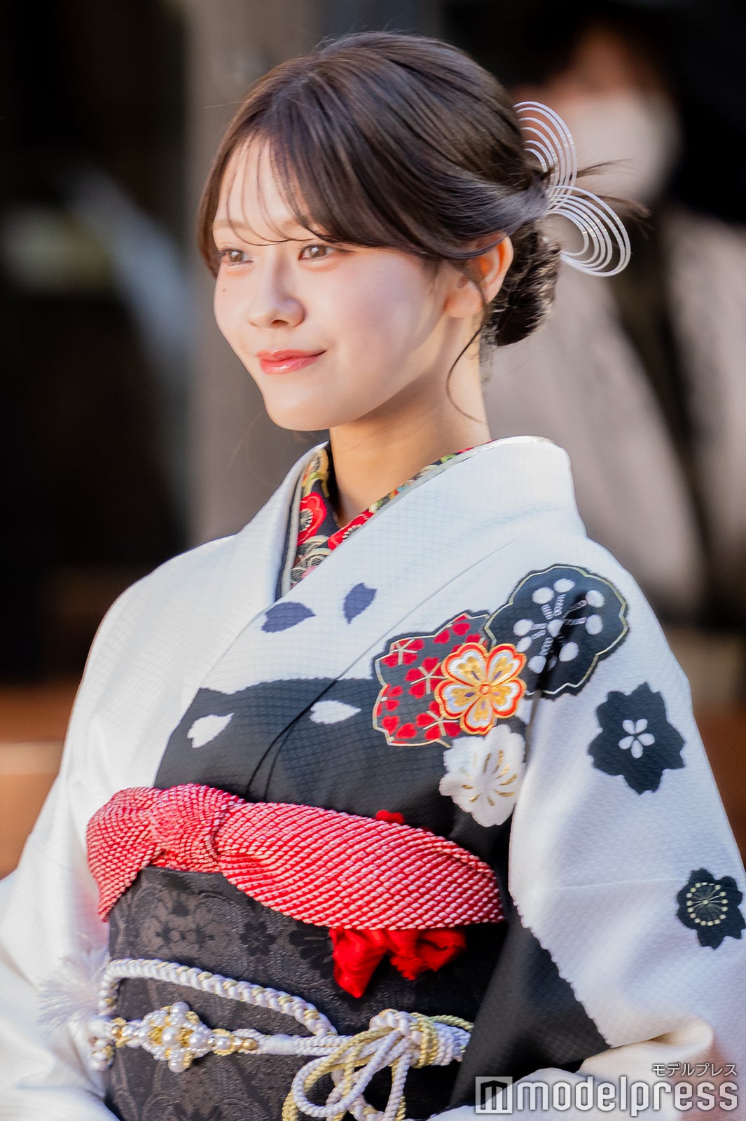奥田と同様にモノトーンを基調とした振袖を選んだ瀬戸口は、黒をベースに白の柄が映える、シックで落ち着いた一着に身を包んで登場。「奥田さんと一緒で大人っぽくなるかなと。よく『20歳に見えないね』と言われるので、20歳に見せたいなと思って、大人っぽいものを選びました」とにっこり。「鹿児島出身なので、私の家族もみんな黒が好きなんです」と話し、「家族にも聞いて、『黒がいいんじゃない』となったので、黒を選びました」と語っていた。(modelpress編集部)