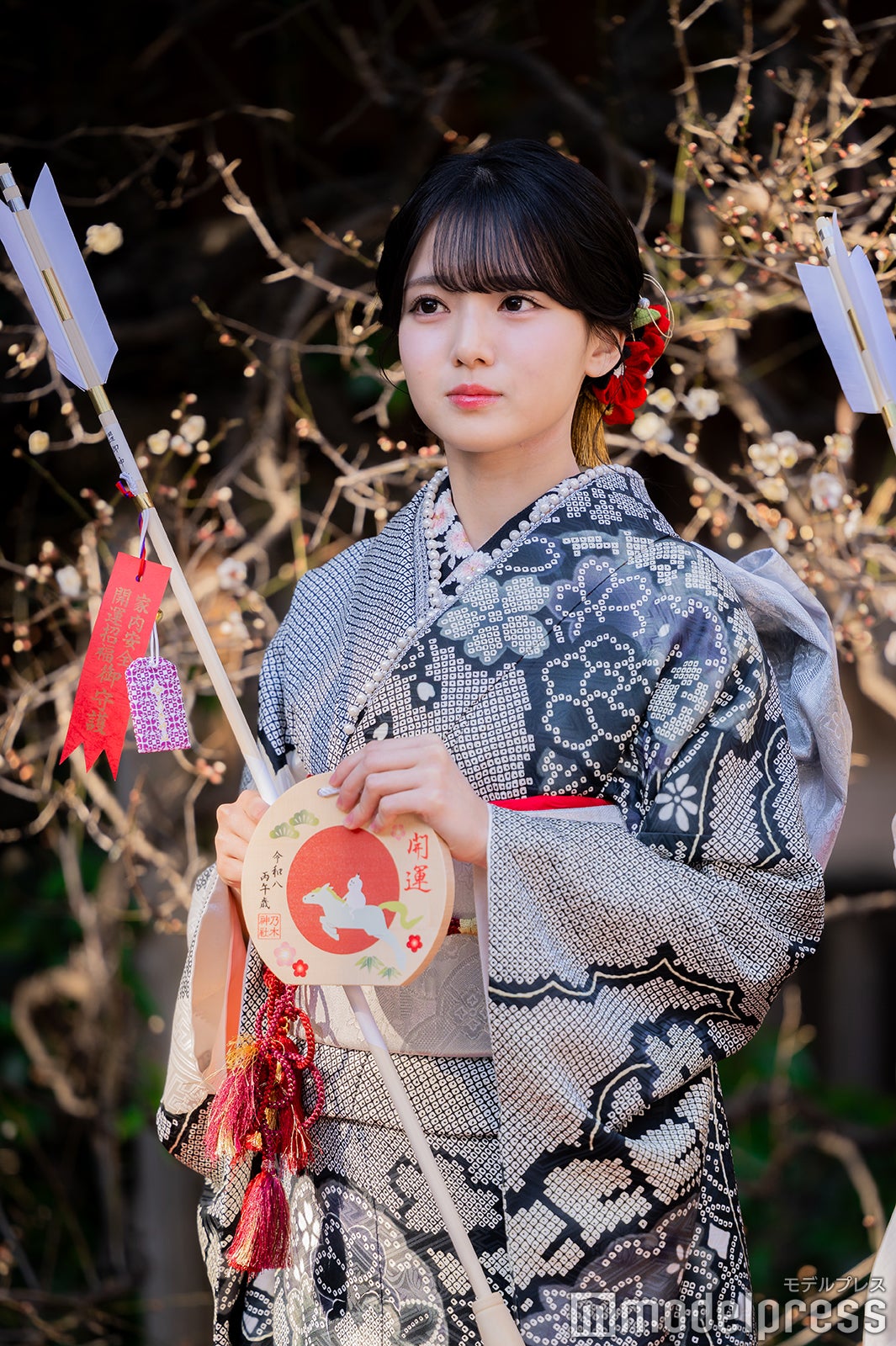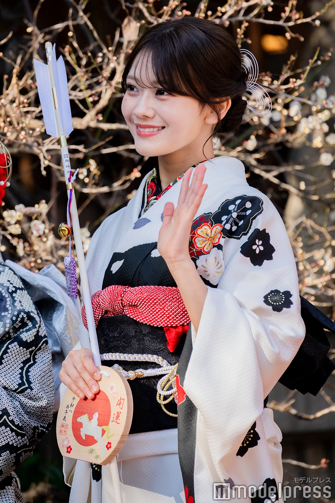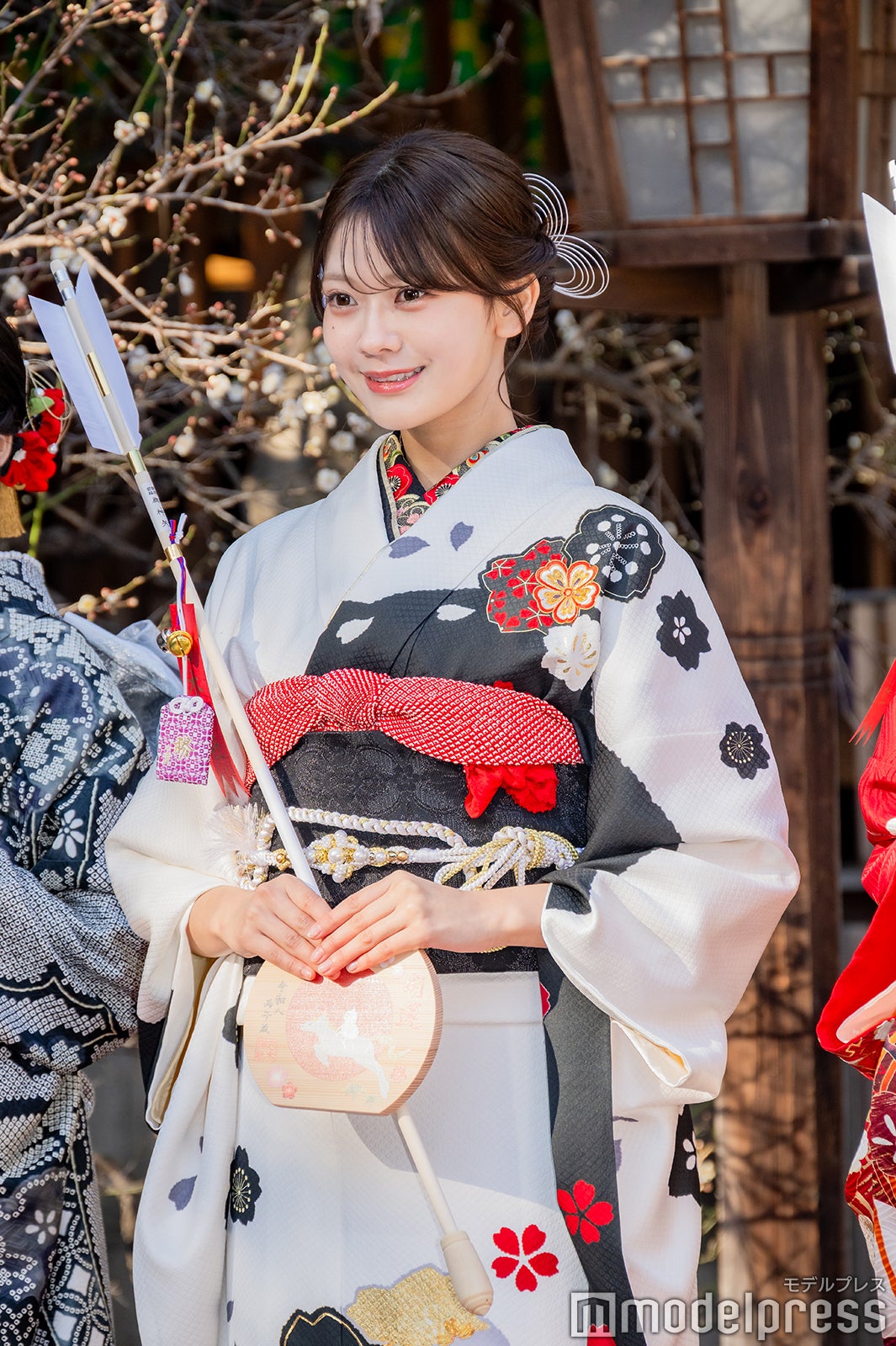 奥田と同様にモノトーンを基調とした振袖を選んだ瀬戸口は、黒をベースに白の柄が映える、シックで落ち着いた一着に身を包んで登場。「奥田さんと一緒で大人っぽくなるかなと。よく『20歳に見えないね』と言われるので、20歳に見せたいなと思って、大人っぽいものを選びました」とにっこり。「鹿児島出身なので、私の家族もみんな黒が好きなんです」と話し、「家族にも聞いて、『黒がいいんじゃない』となったので、黒を選びました」と語っていた。(modelpress編集部)