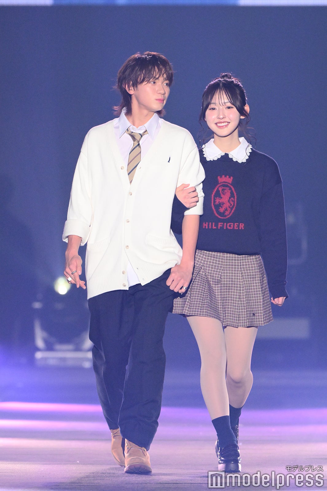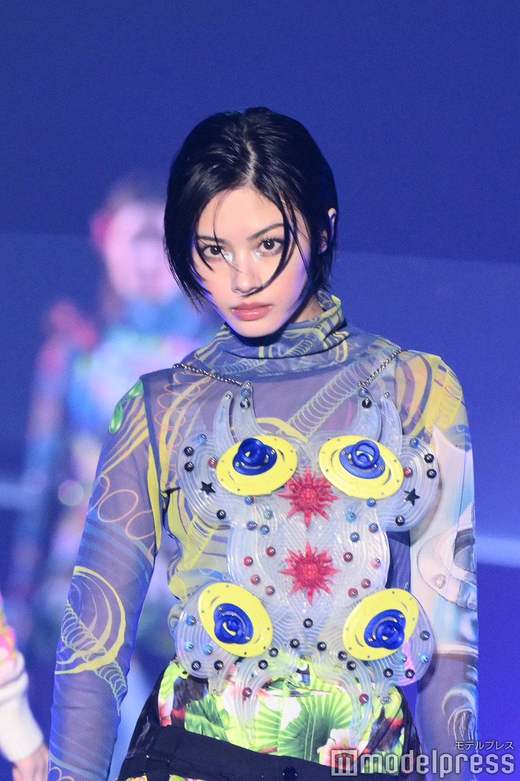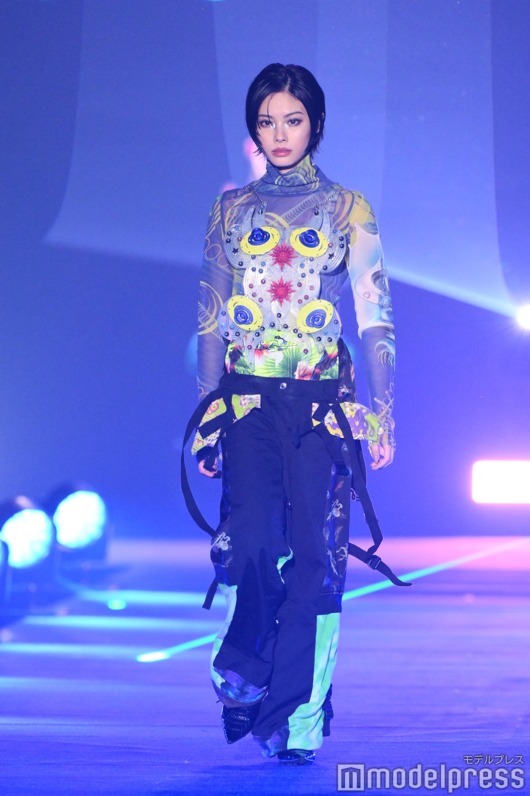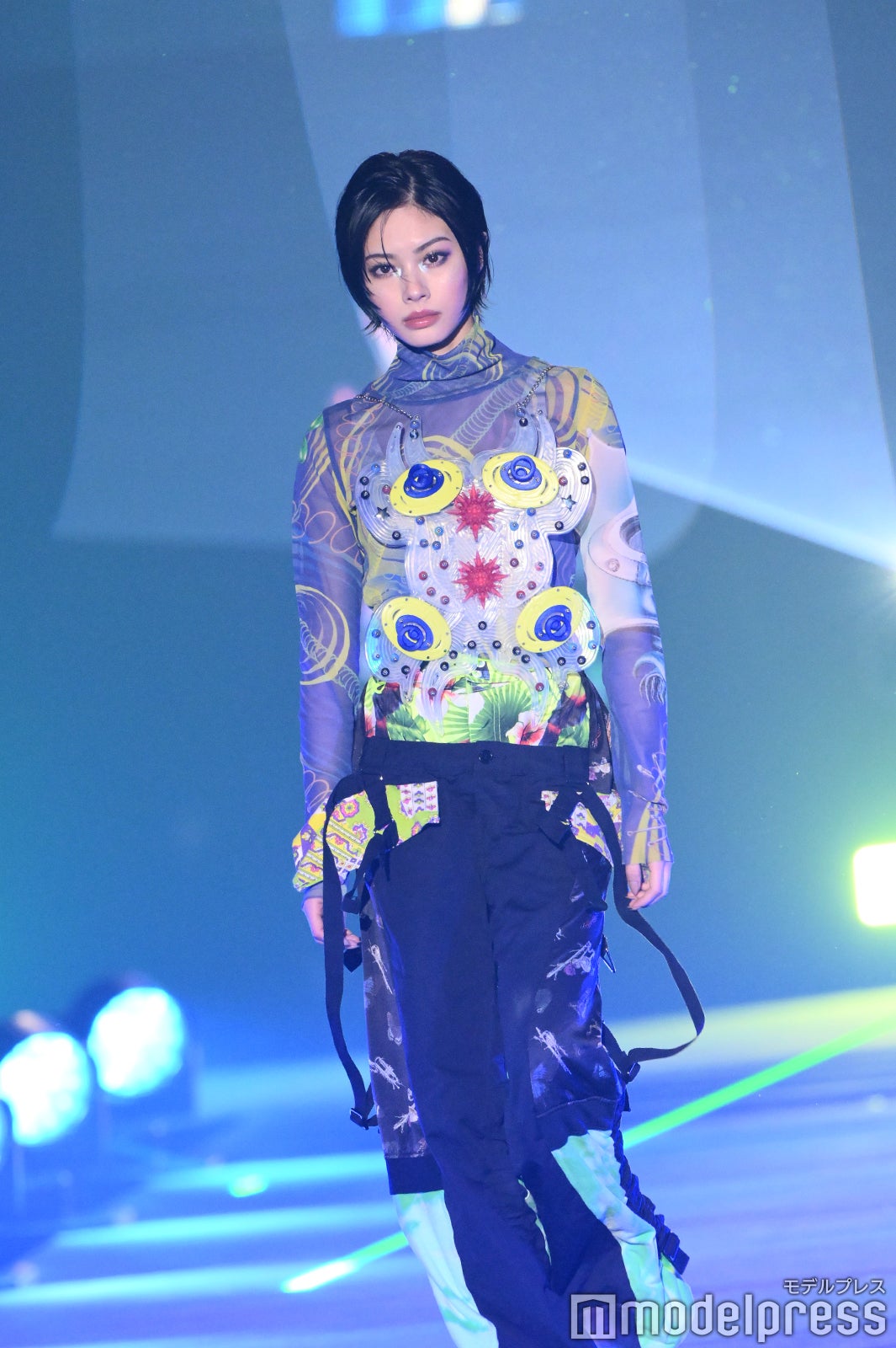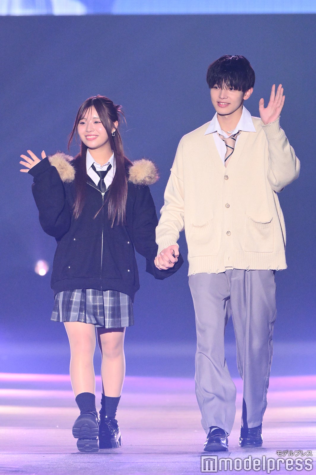 静岡市が誇る“工芸美”をテーマにしたステージには、「TGC20周年セレブレーション公式サポーター」を務めるACEesから、作間と深田が登場。2人は、大胆な柄が印象的な「駿河和染」を現代風にアレンジした衣装を纏い、華やかなスタイリングで堂々としたウォーキングを披露した。存在感のある佇まいで会場を魅了する中、ランウェイ終盤には深田が作間の恐竜モチーフのネックレスをいじる一幕も。仲の良さが垣間見えるやりとりに、会場は大きな歓声に包まれていた。