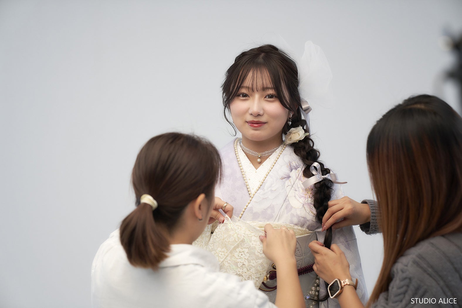 本作は、ショート動画を日常的に楽しむ世代に向けて制作した4本の縦型WebCM。ファッションアイコンとして人気の希空が、各LOOKに合わせて変化する姿や、振袖選びの楽しさを表現した。また、特設コラボサイトでは、希空が各振袖について「着たい!」と思った理由や、プロデュースしたヘアメイクや着こなしを自身の言葉で解説している。スチールや動画の撮影では、大人びた表情を見せる一方で、18歳らしい自然体の姿や等身大のリアクションを披露。振袖をまとうたびに表情が変わる、希空の魅力も見どころだ。撮影当日は、4つの振袖に合わせてヘアメイクやスタイリングを1つずつ変えながら、長時間の撮影に臨んだ希空。撮影序盤では、スタッフと振袖の見え方や袖の角度を確認しつつ、鏡の前で立ち姿や手の位置を何度も調整する姿が印象的であった。カメラが回り始めると、希空はすぐに撮影モードに入り、視線の向け方や上半身の角度を細かく変えながら、1つひとつのポーズに真剣に向き合っていた。