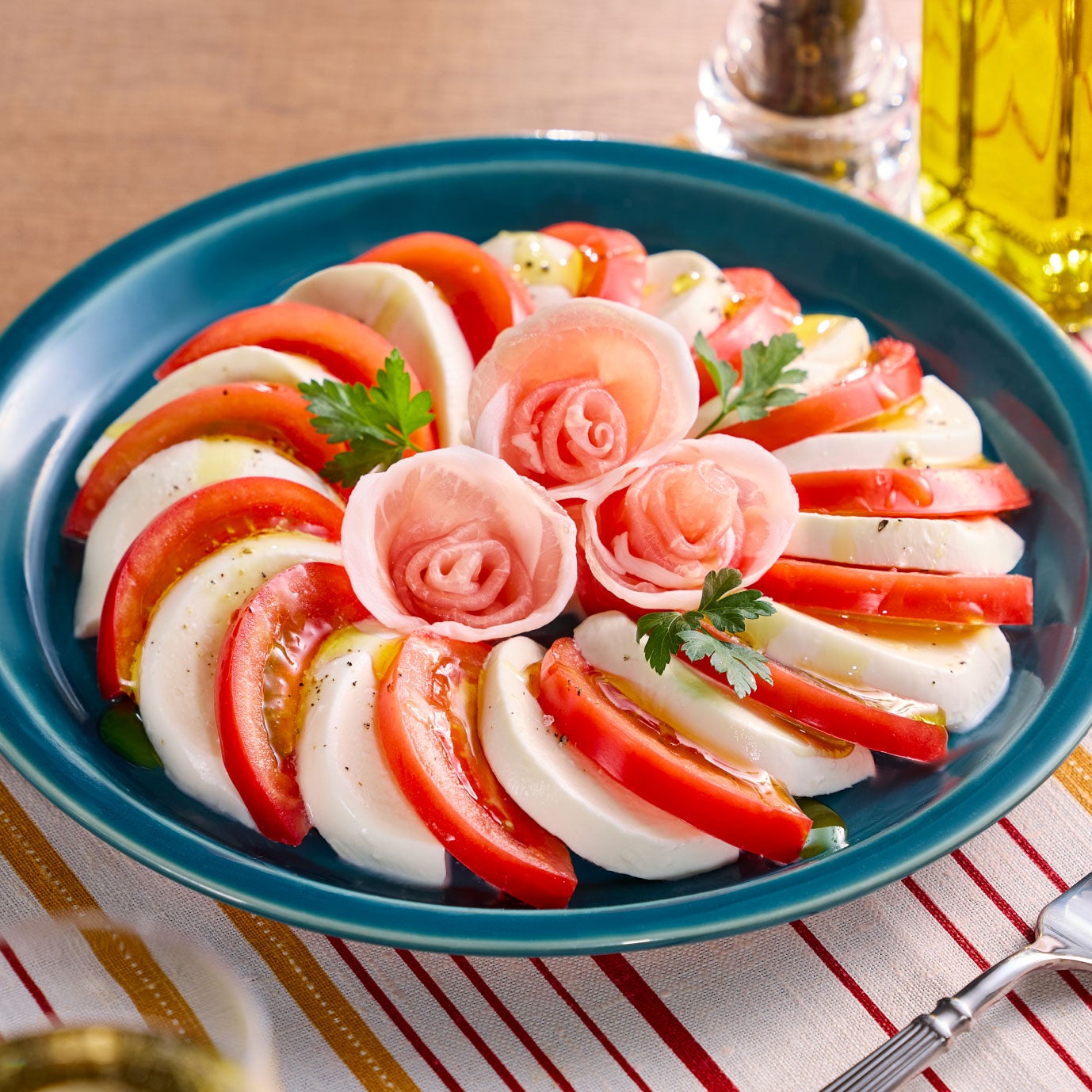 お祝いごとや家族や仲間が集まる日、ちょっとした良いことがあった日。動画はそんな「ハレの日」をテーマに、商品を使った簡単なのに食卓がぱっと華やぐレシピを橋本が紹介していく内容になっている。橋本は料理のポイントを優しくコメントしながら調理を進めていき、モッツァレラチーズの定番料理「カプレーゼ」や、おしゃれに仕上げる「グラスサラダ」など簡単だけど華やかな料理アレンジを紹介している。