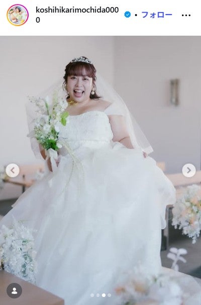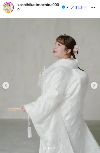 Instagramでも結婚を報告した餅田は「幸せで体重が増えすぎないように気をつけながら、今後も家族(夫+セキセイインコ2羽&モルモット1匹)を大切にして、私らしくお仕事頑張って米りますのでよろしくお願いいたします」(原文ママ)と餅田らしく意気込んだ。
