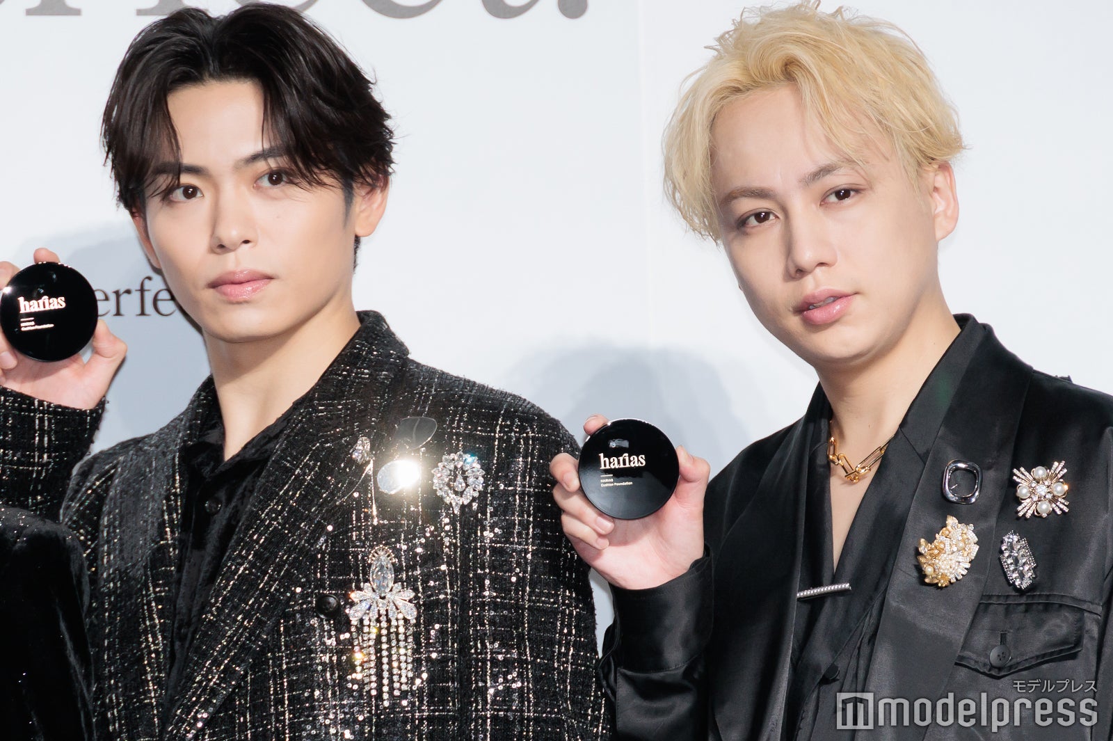 TOBE所属の7人組グループ・IMP.(佐藤新、基俊介、鈴木大河、影山拓也、松井奏、横原悠毅、椿泰我)が1月14日、都内で開催された「HARIAS薬用クッションファンデーション」新CM発表会に出席。基が、事務所の先輩である北山宏光から言われる“基ってる”という表現に言及した。