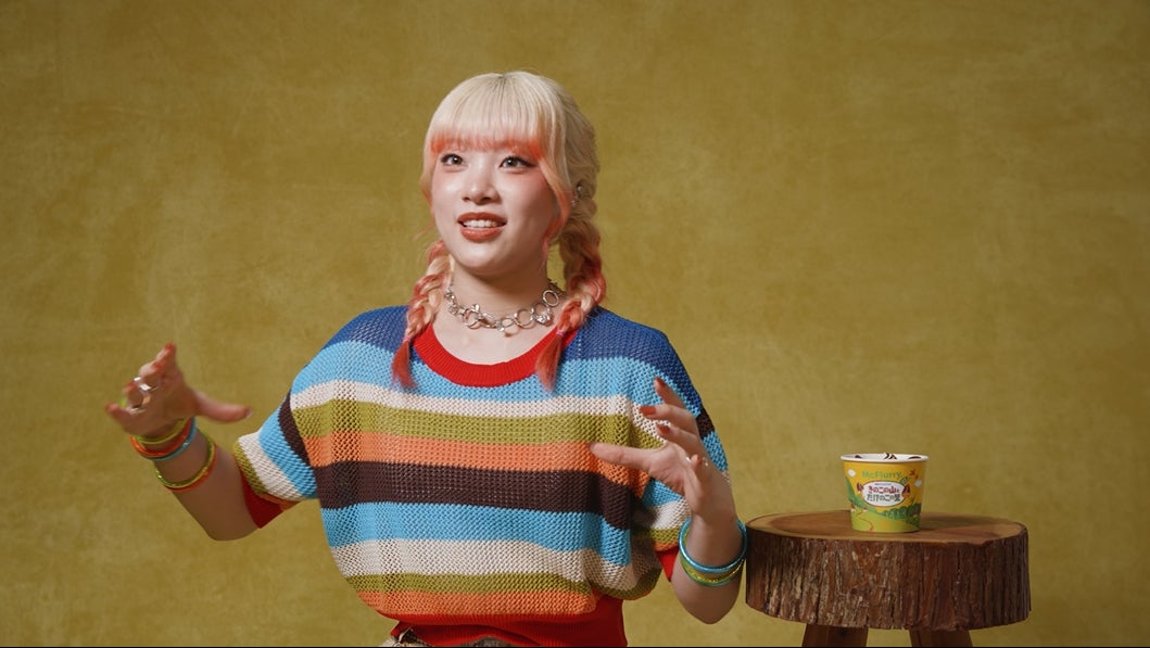 グループとしては3人目の同社CM出演となるMAHINA。巨大なきのこたけのこダンサーたちとオリジナルダンスを披露した。振り入れは当日朝だったにも関わらずキレの良い仕上がりに、現場からは拍手が。カメラが回っていない間も、控え室で何度も繰り返し練習し、本番ではキュートなウインクも飛び出した。「マックフルーリー きのこの山とたけのこの里」を実際に食べたMAHINAが、初めての食レポに挑戦。元々はきのこ派だったが、最近はたけのこ派になったというMAHINA。カットがかかると「大丈夫?できてる?!」と心配な顔でスタッフを見つめながらも「マックフルーリーを家族や友達と食べたことを思い出します」と素敵な表現をしてみせた。