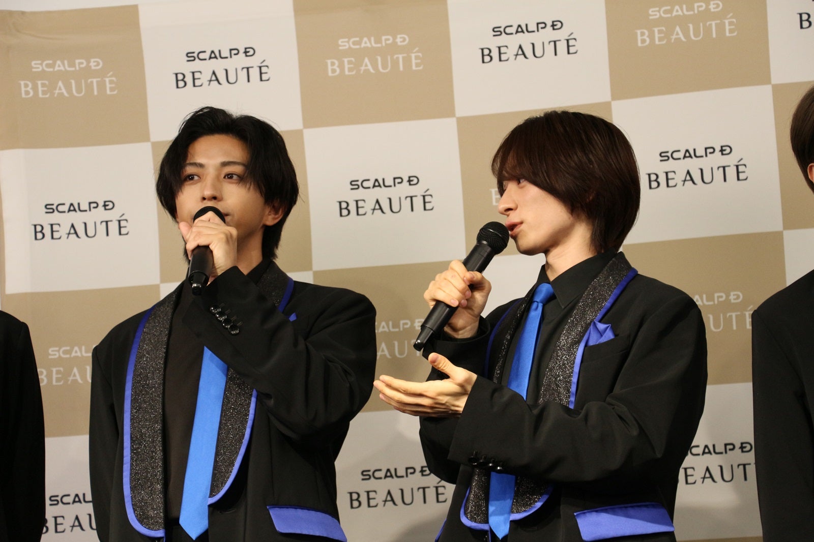 発表会では日頃のヘアケアについてトークを展開。グループ随一の美容意識を持つ小野寺が、ファンから「キューティクル」「天使」と呼ばれていることを明かすと、松岡卓弥がすかさず「中身は悪魔です(笑)」と暴露。また、渡辺はメンバーの中で「1番小顔」だとして橋爪健二の名前を挙げると、橋爪は日頃電気ブラシでケアしていることを告白。「小顔になりすぎて、いなくなるかもしれない(笑)」とお茶目に続け、終始メンバー同士で息の合った掛け合いを披露した。
