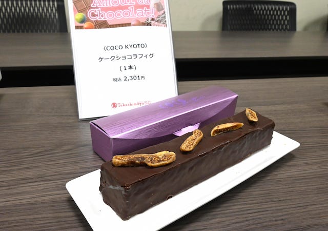 COCO KYOTO「ケークショコラフィグ」(1本/2,301円) 「インターナショナルチョコレートアワード2021‐2022アジア大会」銀賞受賞のチョコレートを使用した「COCO KYOTO」自慢のケークショコラは、小麦粉と白砂糖不使用のこだわり抜かれたチョコレート生地に、丹波赤ワインで漬け込んだイチジク入が入っています。