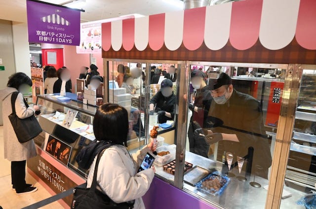 日替わり開催の京都パティスリー。目の前でスイーツを作ってくれます。 中でも、京都高島屋S.C.のイチオシが、京都にゆかりのあるショコラを集めた「Link Kyoto(リンクキョウト)」エリア。1月27日(火)まで日替わりで開催される「京都パティスリー」を筆頭に、9つのブースが並びます。