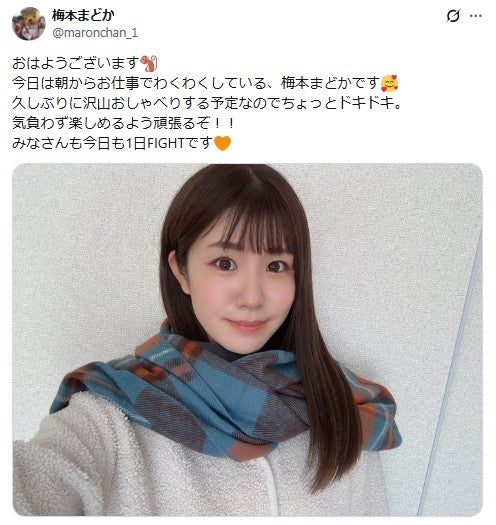 元SKE48でタレントの梅本まどか(33)が1月21日、自身のX(旧Twitter)を更新。オートバイレーサーの渡辺一樹(35)との結婚を発表した。