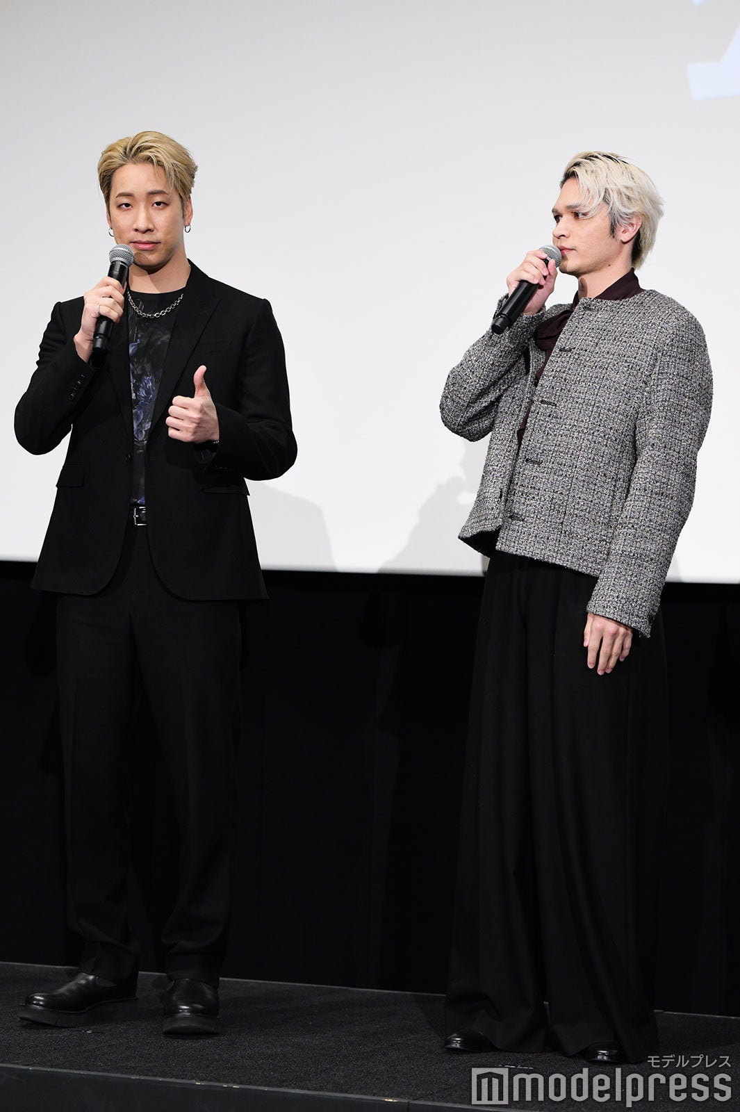 本作は、4回に渡り開催された音楽ライブから厳選されたライブ楽曲映像とミュージックビデオをミックス再編集。原作小説「BATTLE OF TOKYO」(角川文庫)で描かれている5チームの闘い、そして、絆の物語を描いた最新アニメーション映像を融合したものだ。この日は同グループの世界、中島颯太、THE RAMPAGEの陣、与那嶺瑠唯、藤原樹、PSYCHIC FEVERの半田龍臣、剣、WEESA、そして平沼紀久監督も出席していた。NEO EXILE(LIL LEAGUE、KID PHENOMENON、THE JET BOY BANGERZ、WOLF HOWL HARMONY)の参加について、中島は「すごいですよね。NEO EXILEの子。自分たちがデビューして4か月くらいでミュージックビデオを撮ったんです。THE RAMPAGEさんにいったり、GENERATIONSさんにいくのって、結構緊張したんです」と自身の経験を振り返り「NEO EXILEは、本番とかライブの時の表情とかが、ガチで来てくれるので。そのメンタルっていうのはすごいなと思いました」と称賛した。
