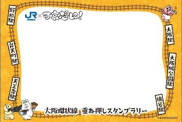 ラッピングトレインの運行に合わせて、大阪環状線の6駅を舞台にしたスタンプラリーを開催。台紙にスタンプを重ね押していくと、キャラクターたちのコラボ限定イラストが完成する特別仕様です。