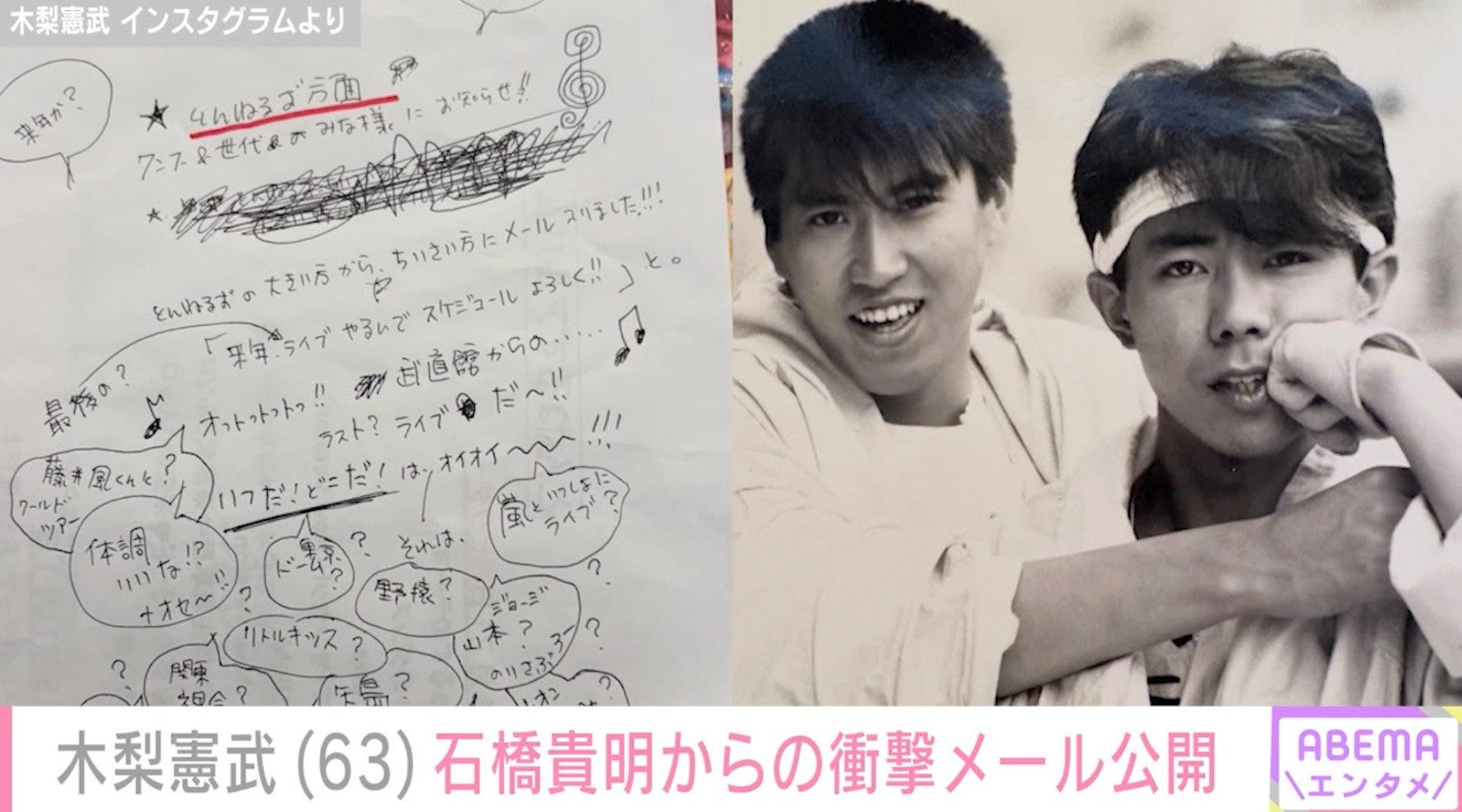 この投稿にファンからは、「貴さんからのメッセージ泣いちゃうよ〜。とんねるずライブ絶対行く!」「いつでもスタンバイしておきます。ノリさんありがとう」など、復活ライブを心待ちにする熱い声が多数寄せられている。(『ABEMA NEWS』より)