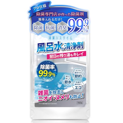 【500回分で驚愕コスパ!】パウダータイプ 風呂水の清浄剤 150g 大容量 除菌率99.9% 2日目のお湯もキレイが続く 節水 節約 エコ 洗濯再利用OK スプーン1杯入れるだけ パッチテスト済の安全性 日本製