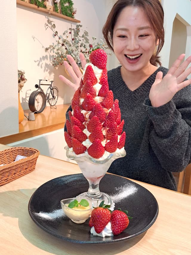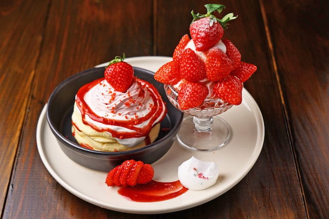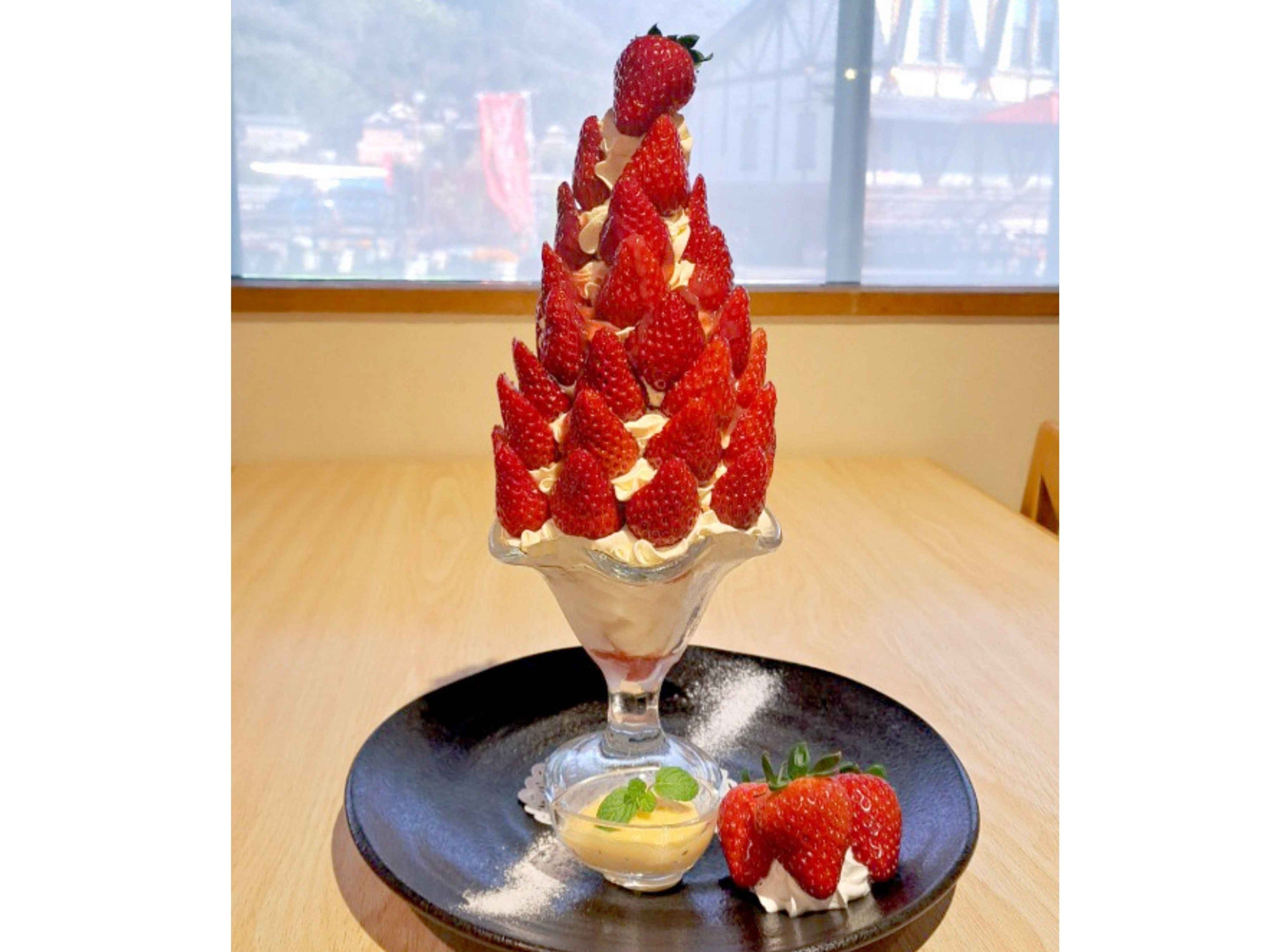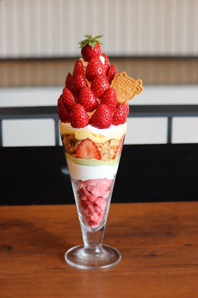 上から下までいちご尽くし! 老舗果実園の特製パフェ 古都華の聖地で贅沢いちごパフェ 道の駅の地元産いちごのパフェは極みの境地! “いちごの村”を代表する人気古民家カフェのパンケーキプレート上から下までいちご尽くし! 老舗果実園の特製パフェ