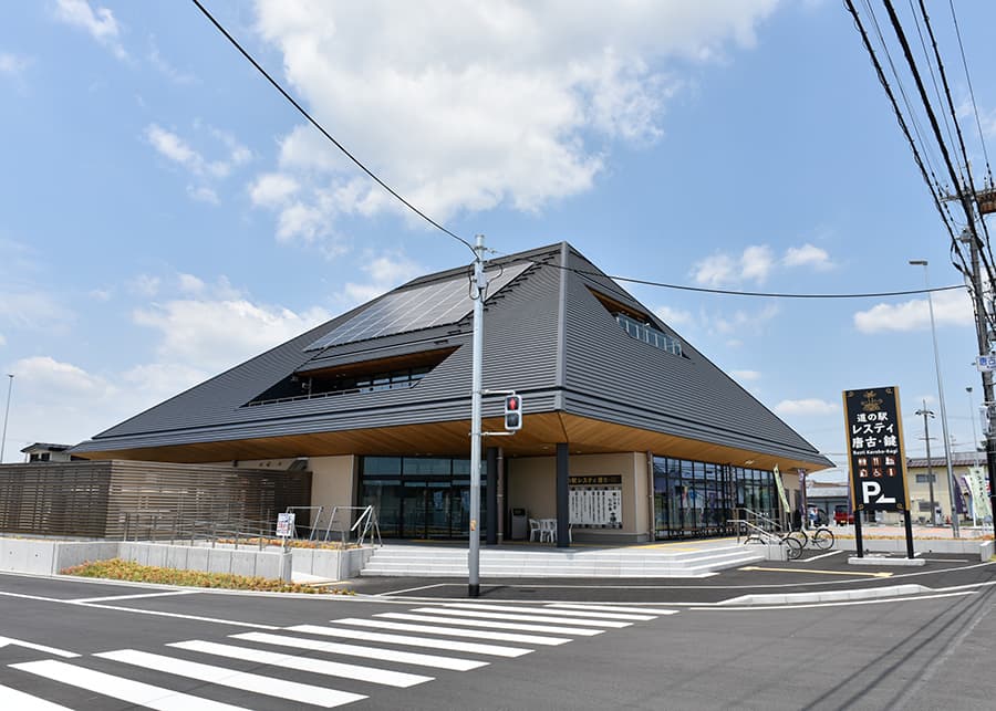 日本最大級の弥生遺跡「唐古・鍵遺跡」に隣接する、奈良県田原本町の道の駅 レスティ唐古・鍵では、2階「からこカフェ」の、田原本町産「古都華」を使用したパフェ「贅沢いちごパフェ極」が人気。