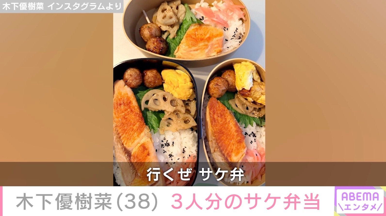 “恋人とのベッドでの姿が話題”木下優樹菜さん(38)、3人分のサケ弁当を披露