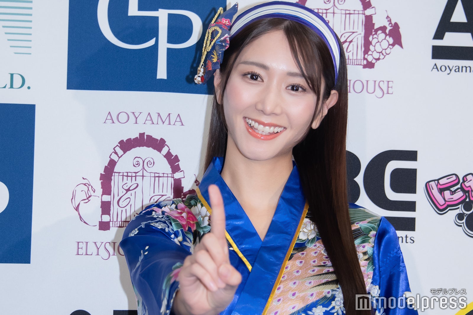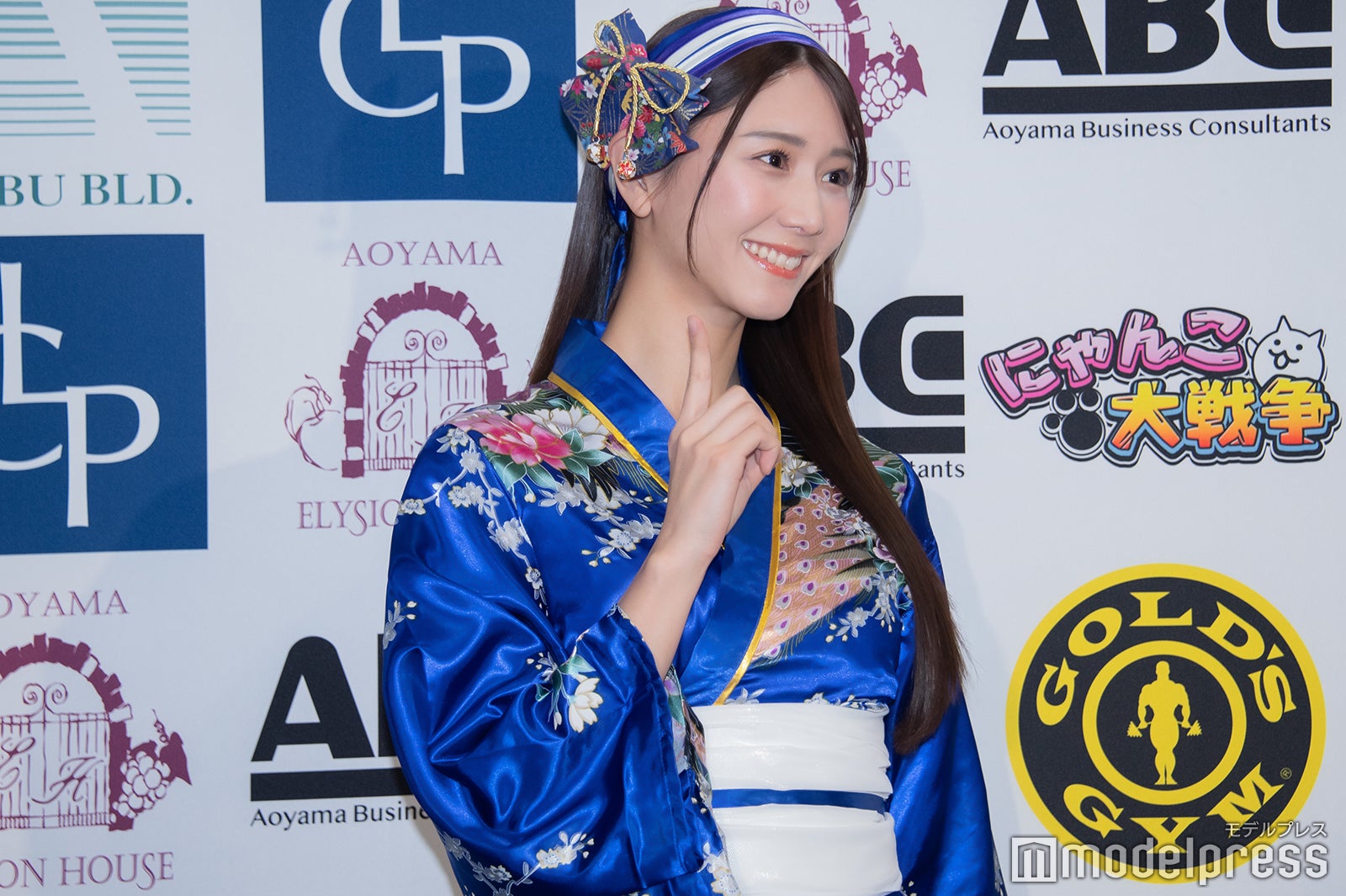 そして、この日の衣装についても言及。「K-1カラーの青と、後ろは会場を華やかにしたいなと思ったので帯を花形に。海外から来ている選手が多いので、日本の文化と言えばこの浴衣というか着物なのかなと思った。そして私の9頭身がわかるようにミニ丈のものをご用意していただきました」と紹介した。(modelpress編集)