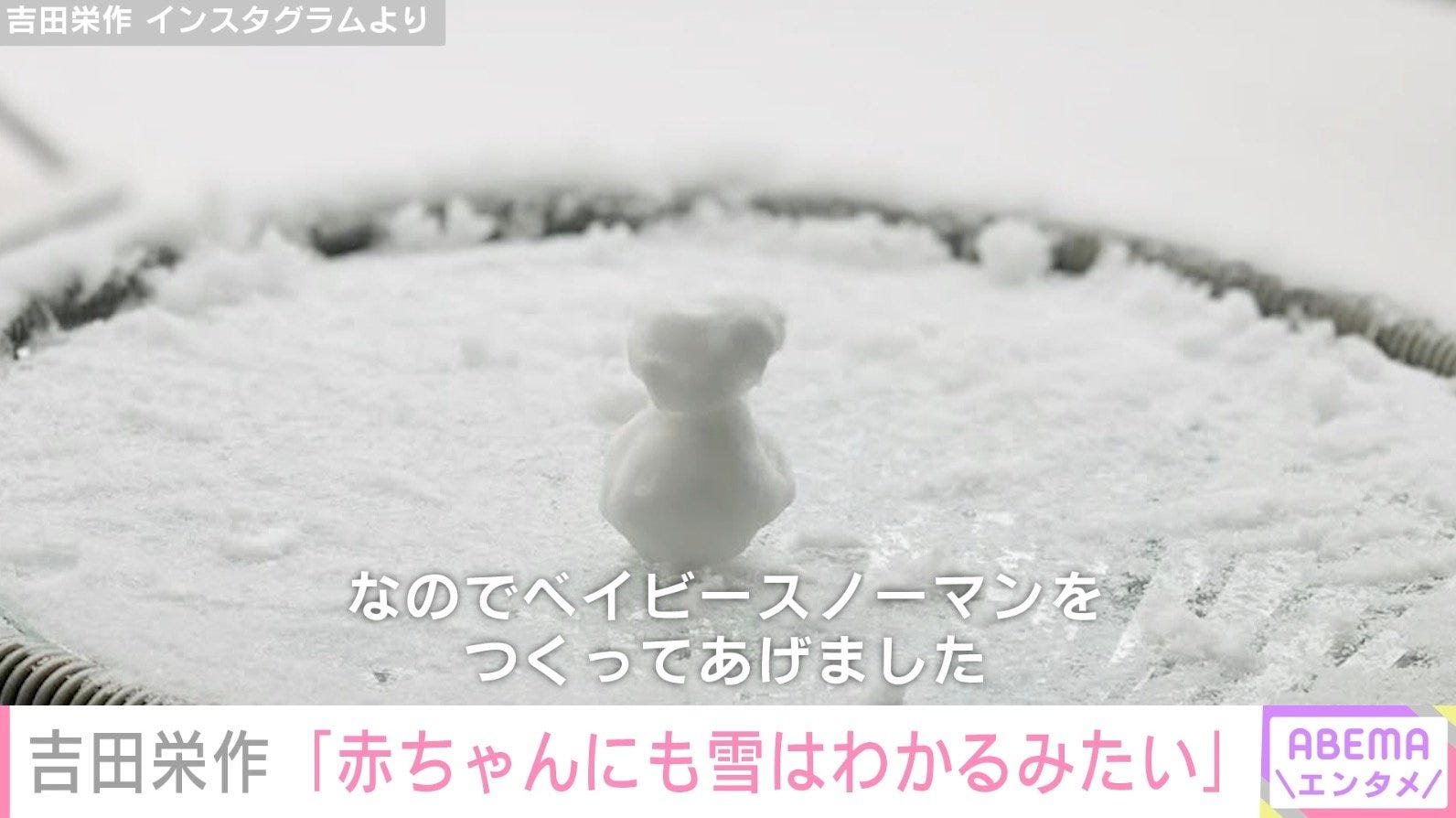 吉田も同日、自身のInstagramを更新。「東京にも雪が積もりました。赤ちゃんにも雪はわかるみたいで ぼんやり眺めています。なので、ベイビースノーマンをつくってあげました」と、我が子のために雪だるまを作ったことを明かした。