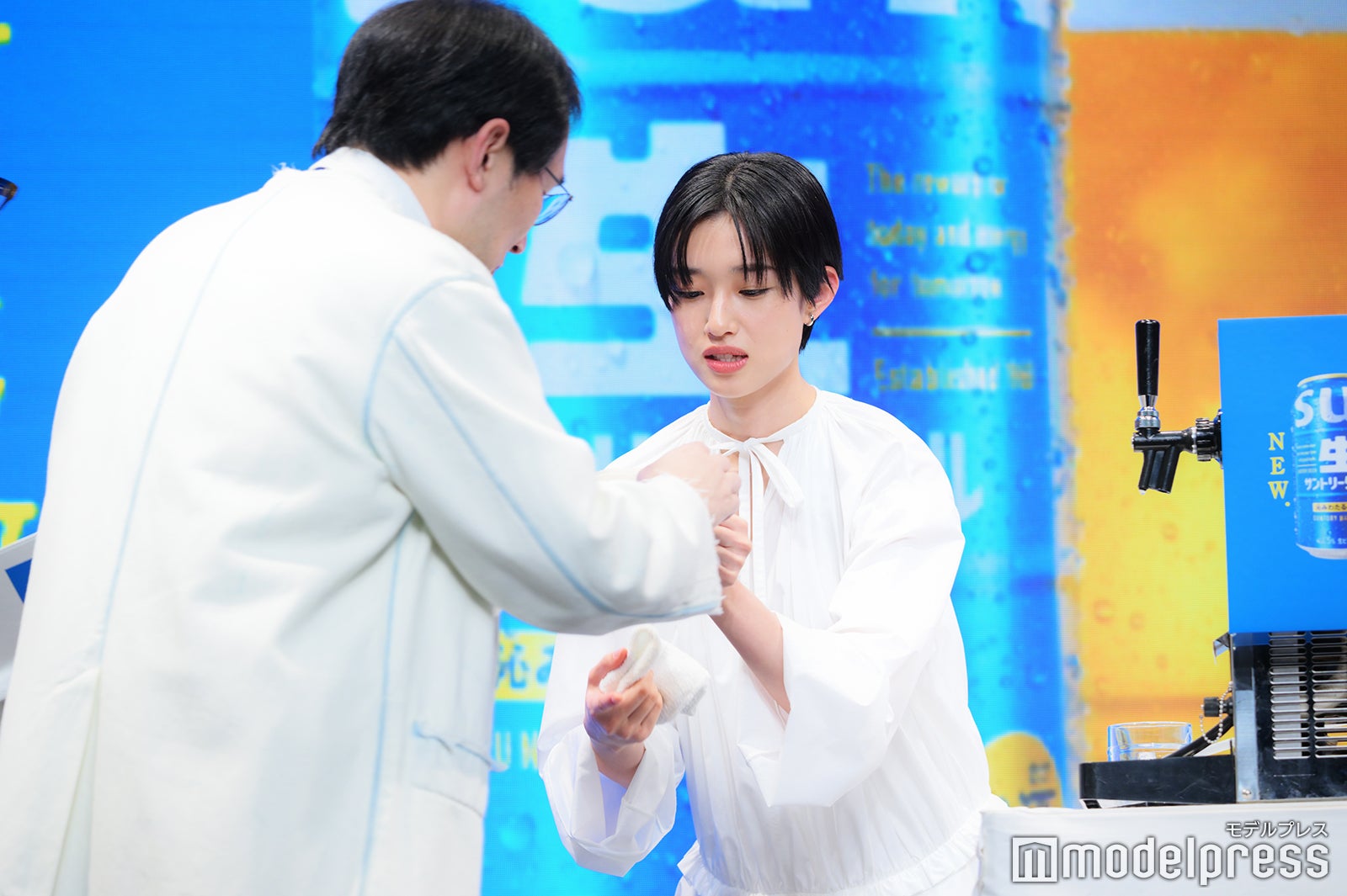 女優の河合優実が10日、都内で開催された「サントリー生ビール」新CM発表会に、ミュージシャンの斉藤和義とともに出席。人気芸人にムチャブリする場面があった。