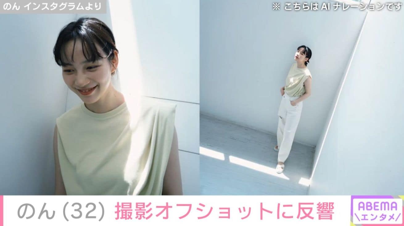 俳優ののん(32)が、透明感あふれる撮影オフショットを公開し、反響が寄せられている。