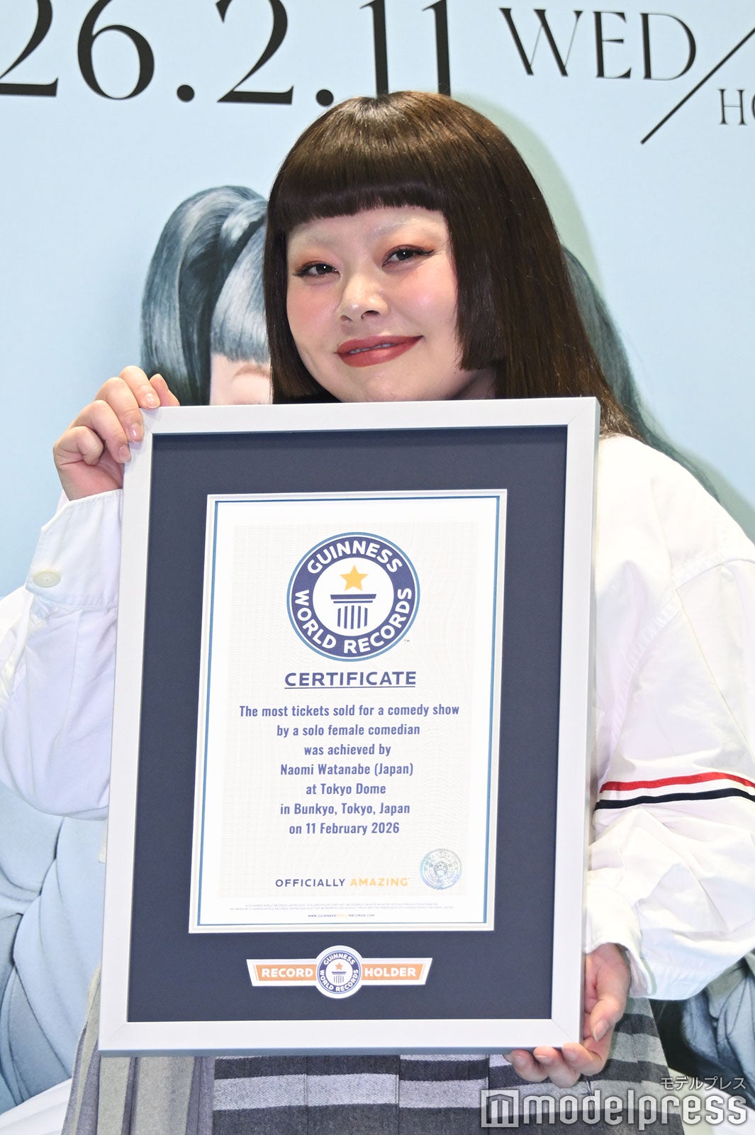 お笑い芸人の渡辺直美が2月11日、東京ドームにてコメディショー「渡辺直美 (20) in 東京ドーム」を開催し、イベント直後に囲み取材を実施。同公演がギネス世界記録に認定されたことを受けて、認定証を受け取った