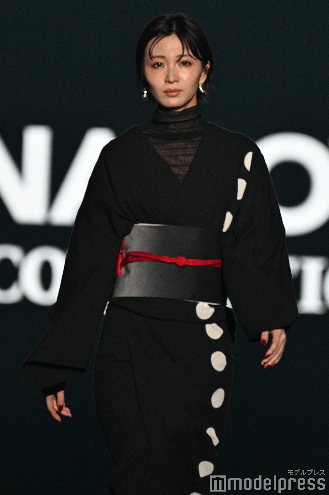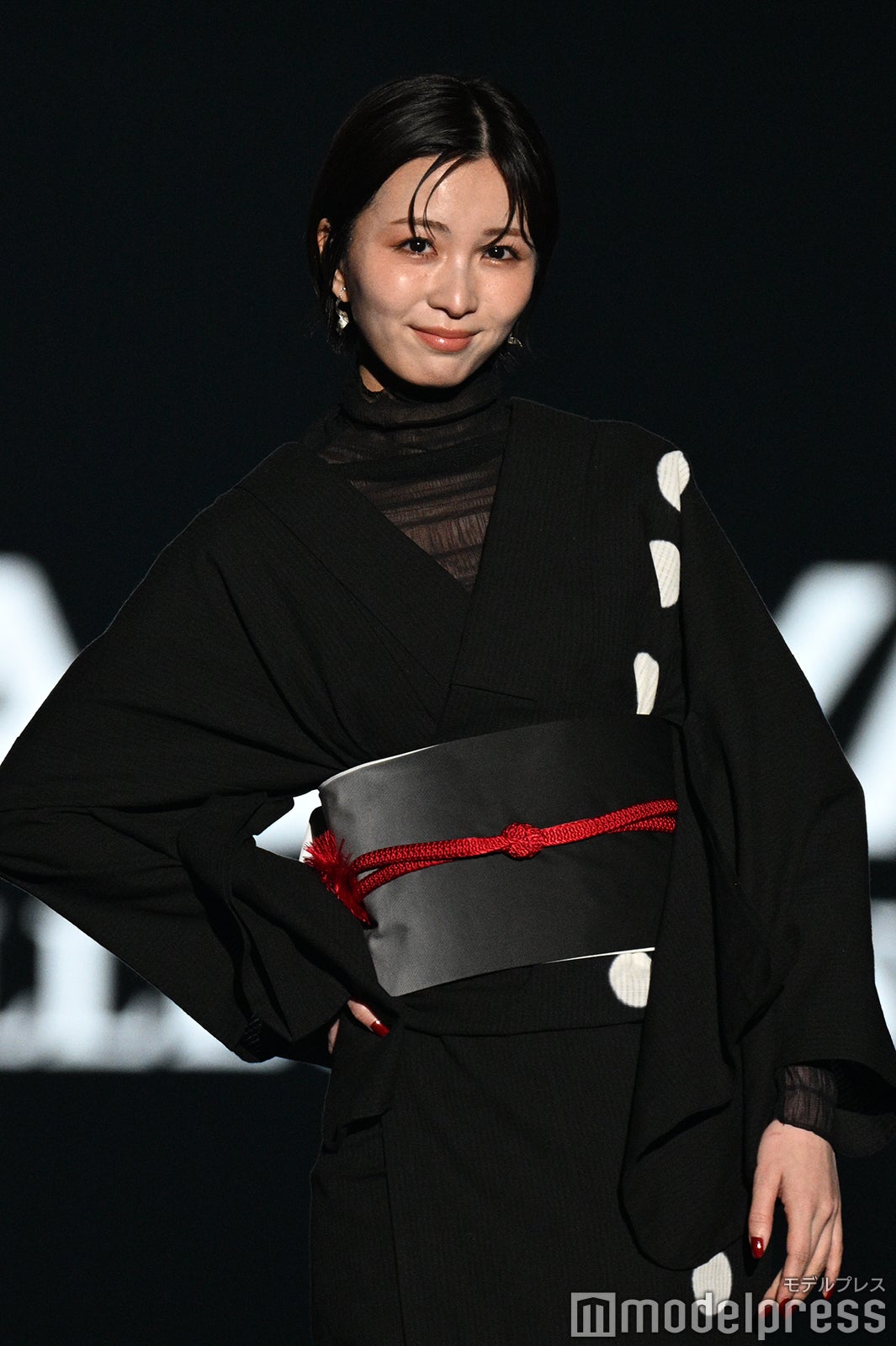 愛知県出身の寺田はフーディーに黒の着物と羽織を重ねたシックなスタイルを着こなし、凱旋ランウェイ。ランウェイトップでは身につけていた黒縁メガネを外し、微笑を浮かべた。また、ランウェイを去る直前には何か呟く姿も。「なんて言った?『好き』かな?」「ドキドキした」「メガネ外す瞬間の色気すごい」「高身長で見惚れる」などの反響が集まっていた。