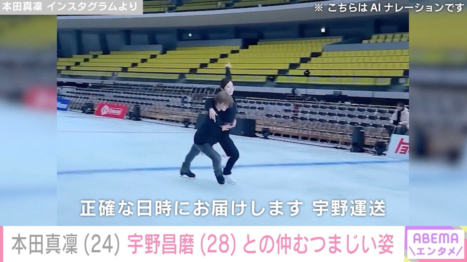 2026年2月15日の更新では、アイスショーの裏側や、「正確な日時にお届けします 宇野運送」とつづり、宇野が本田を抱える練習風景などを公開している。