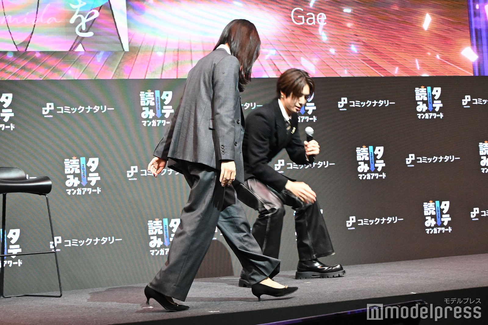 ゲスト審査員として出席した佐野は、「せーの、『Log in to us!』INIの佐野雄大です!」と1人での登壇となったが、メンバーと声を合わせるように「せーの!」と合図としてから挨拶。ともにゲスト審査員として登壇したぱーてぃーちゃんのすがちゃん最高No.1から「1人なのに(笑)」、信子からは「うちらもやりそうになった!」とツッコまれるなど、早速会場の空気を温めた。「INI・佐野雄大賞」としてGae氏による「枯れた花に涙を」を選定し、好きなシーンを語る場面では、主人公に思いを寄せる男性が、「俺以外のやつと連絡とるなよ」と携帯を渡すシーンがお気に入りだと熱量たっぷりにトーク。イベント全体を通じてすがちゃん最高No.1とは登壇する受賞者をいかに丁寧にエスコートするかというノリが生まれていたことから、今回佐野はしゃがんでまで立ち位置を説明したうえで、捌ける際にも階段下まで案内するなど大げさに誘導し、すがちゃん最高No.1から「着いてくんな(笑)!」とツッコまれるほどだった。