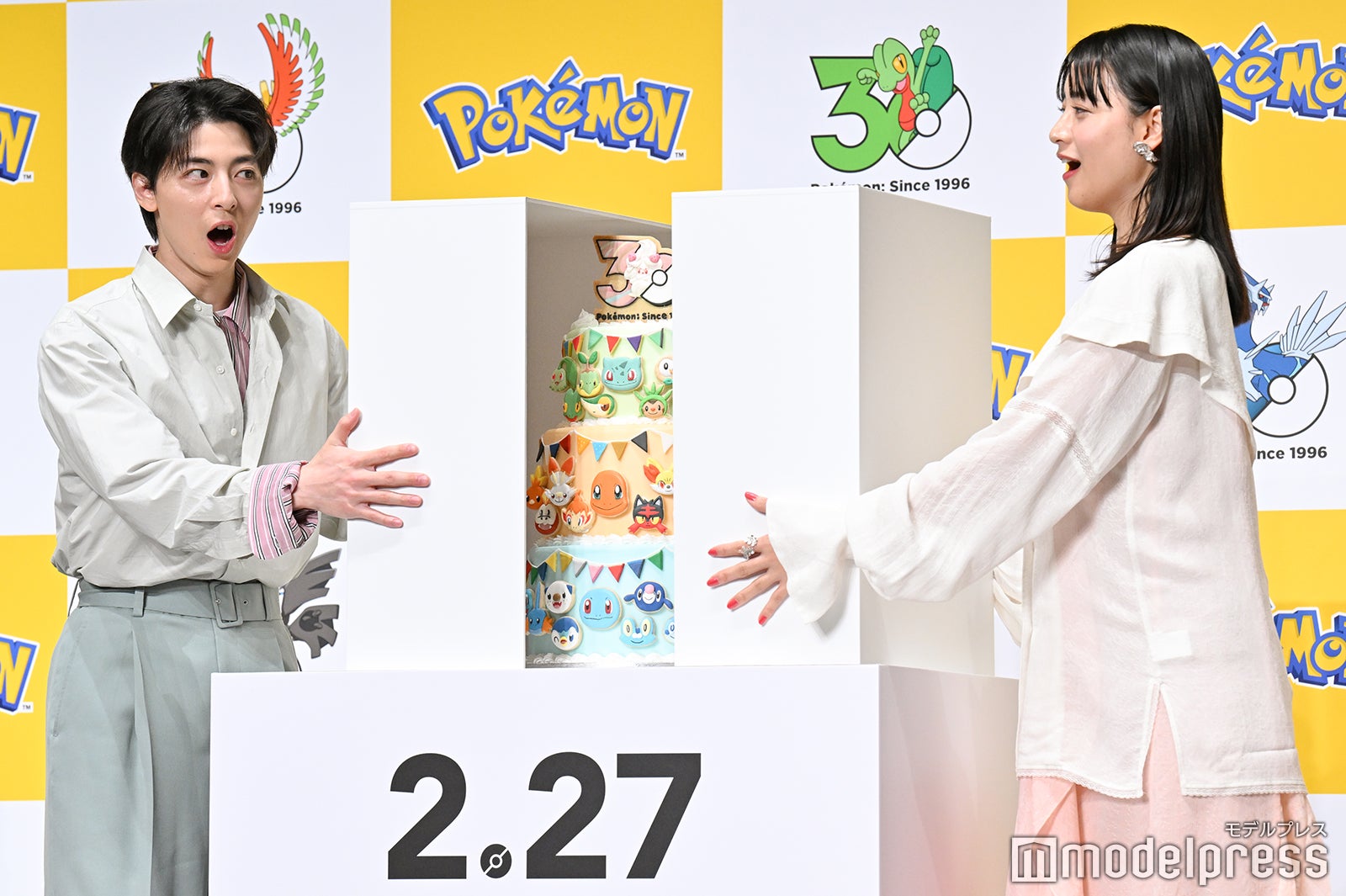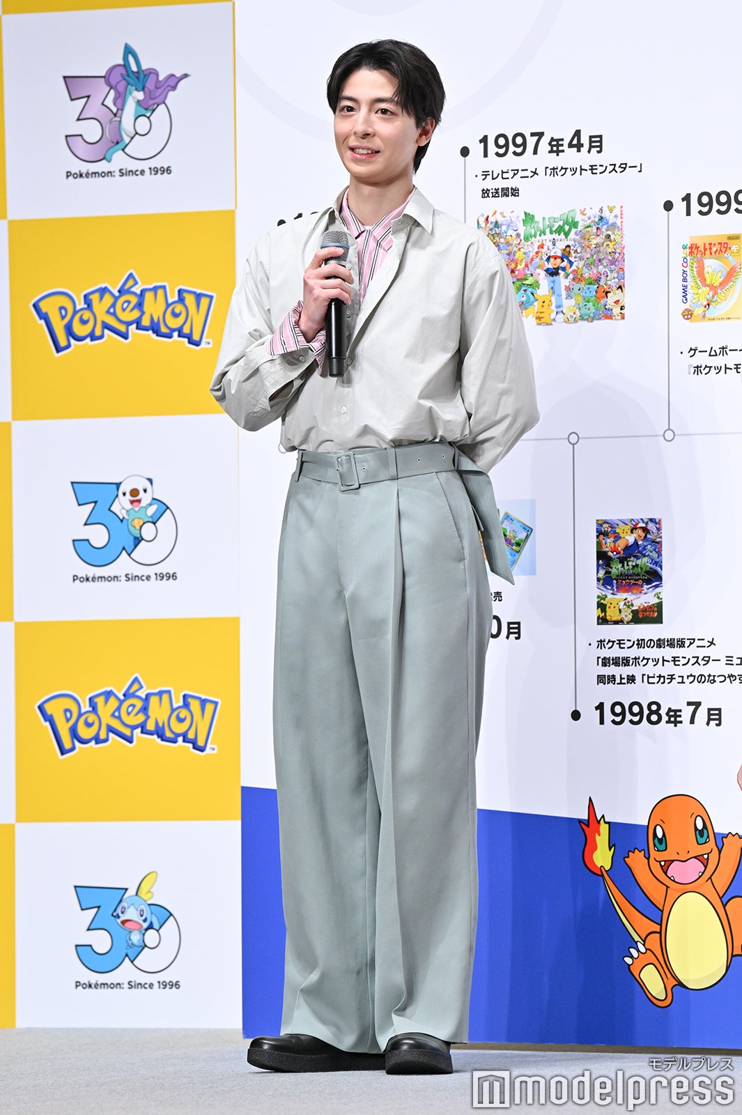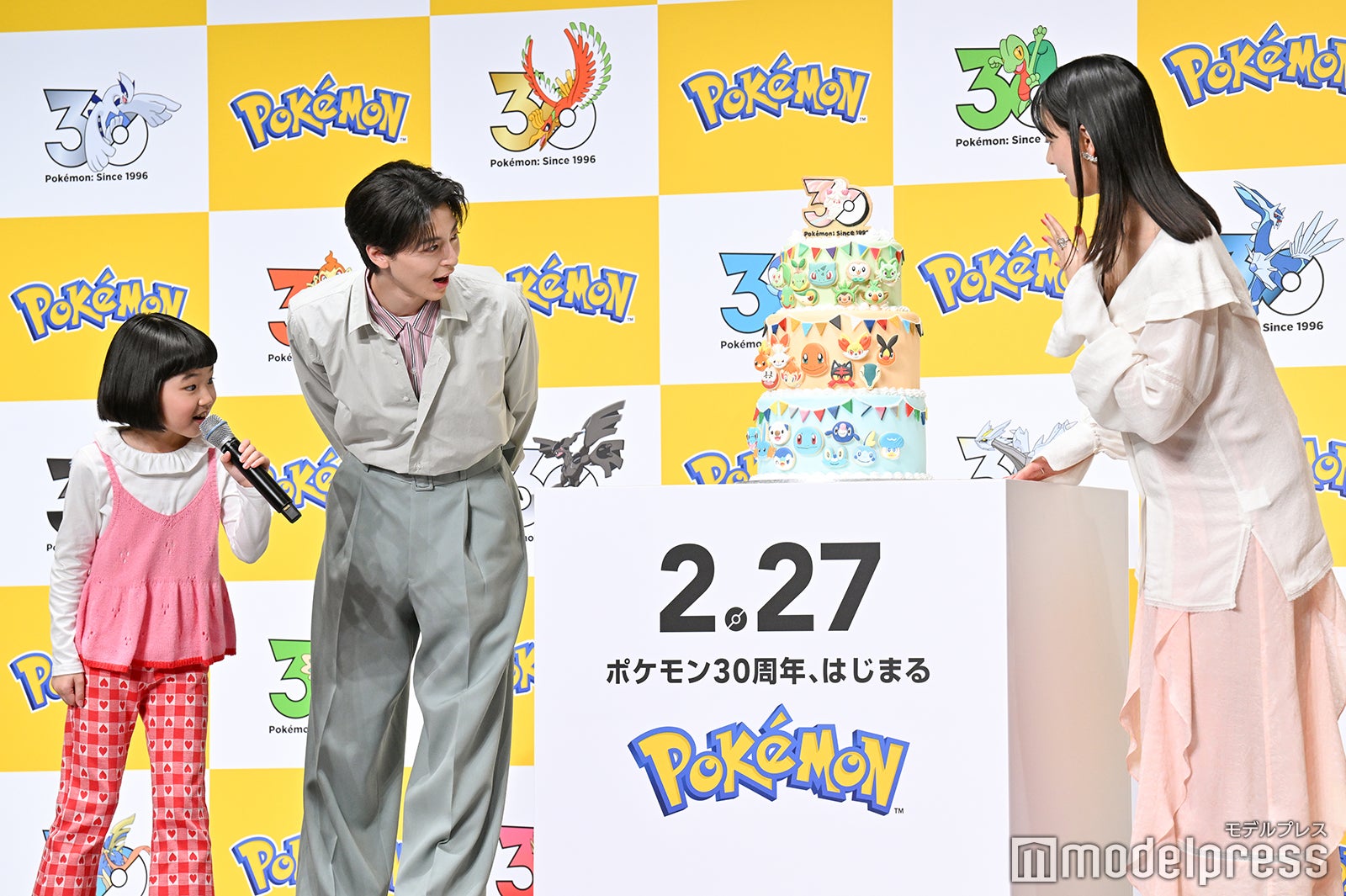 5人は好きなポケモンをイメージしたカラーの衣装で登場。改めて、ポケモンが30周年を迎えたことについて、山本は「30周年と聞いてびっくりしました。(出会いは)確か、私が4歳のときで、アニメが始まるあたりで周りの子たちが『ポケモンのアニメが始まるらしい』とざわついていた状況を今でも覚えています」と懐かしみ、高杉は「僕も今年30歳なんですけど、僕らの世代の96年生まれは“ポケモンと同い年”というのを知ってる方が多いと思います。もちろん僕も知っていて、一緒に大きくなってきたという感じがすごくしているので、今回、小さい時から遊んでいた『ポケットモンスター』と、大きくなった自分と、こうして一緒に30周年をお祝いすることができてすごくうれしいです」と声を弾ませた。また、年表でポケモンの歴史を振り返る企画も行われ、ポケモンと出会った4歳時の写真を披露した山本は「記憶がなくて、こんな写真があったんだってくらいなんですけど、見てわかる通りお調子者でした。こんな感じで毎回この顔をして写真を撮っていました。あとはレンズに近づいちゃう子でしたね」と懐かしんだ。