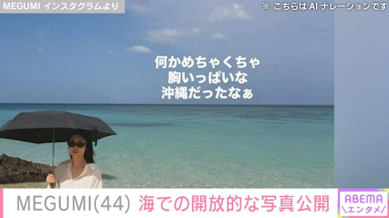 タレントのMEGUMI(44)が、沖縄の海での開放的な写真を公開した。