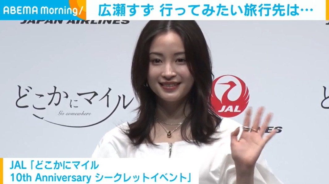 26日都内で、日本航空が提供する国内線特典サービス「どこかにマイル」の10周年記念イベントが行われ、「JALマイルライフ」のCMキャラクターを務める俳優の広瀬すず(27)が登壇した。