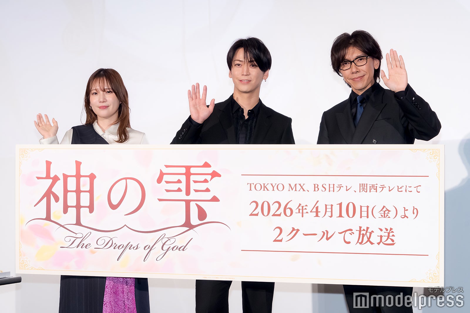 「神の雫」は 2004〜2014年「モーニング」(講談社)で連載していた原作・亜樹直/作画・オキモト・シュウによる漫画作品。幻のワイン“神の雫”をめぐる心揺さぶる人間ドラマと、ワイン初心者にもわかりやすい表現から世界的ワインブームを引き起こすと同時に、ワインをめぐる多彩で正確な内容から、ワイン生産者などの業界関係者からも高い支持を得て、全世界シリーズ累計 1,500万部を突破している。2009年には日本テレビ系にてドラマが放送され、2023年には日仏米共同製作の国際連続ドラマ「神の雫/Drops of God」シーズン1が配信され、2026年1月23日より「シーズン2」が Huluで国内独占配信スタート。新たなメディアミックス展開として初のアニメ化が決定した。(modelpress編集部)