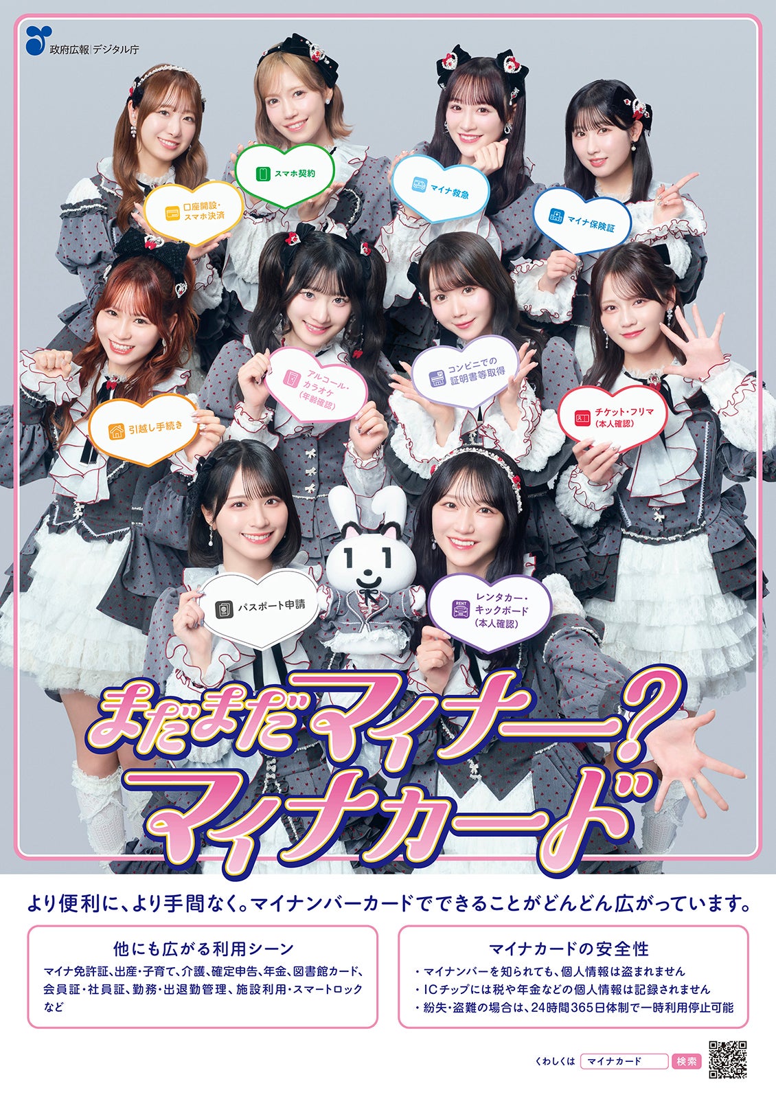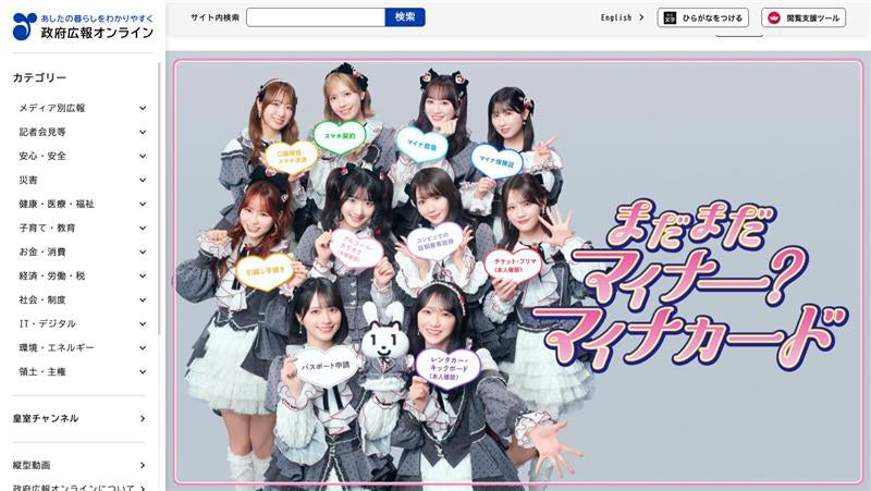また、本キャンペーンのCMオリジナルソング「まだまだマイナー?マイナカード」のフルバージョンPVも公開。巨大マイナカードをバックに、マイナちゃんと=LOVEがオリジナルダンスを披露しながら、マイナカードについてテンポよく歌いあげる。さらに、メンバーが2人組になり、マイナカードの利用シーンを伝える縦型ショート動画が計5本、政府広報のSNSで配信される。コンビニでの住民票取得、マイナ保険証、本人確認など、日常のシーンでマイナカードが活躍することをショート動画ならではのテンポの良さで紹介。また、メンバーとマイナンバーPRキャラクター「マイナちゃん」がCMオリジナルソングの振り付けの一部を行うショート動画も公開される。