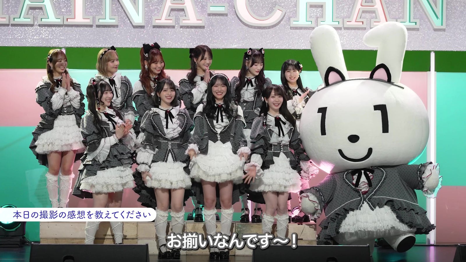・新CMの撮影を終えて佐々木舞香「こういう本当のライブ会場みたいなセットで、CMオリジナルソングを歌わせてもらって。そしてマイナちゃんの衣装が、私たちとお揃いなんです!動くたびにね、フワフワしててかわいいですマイナちゃん」