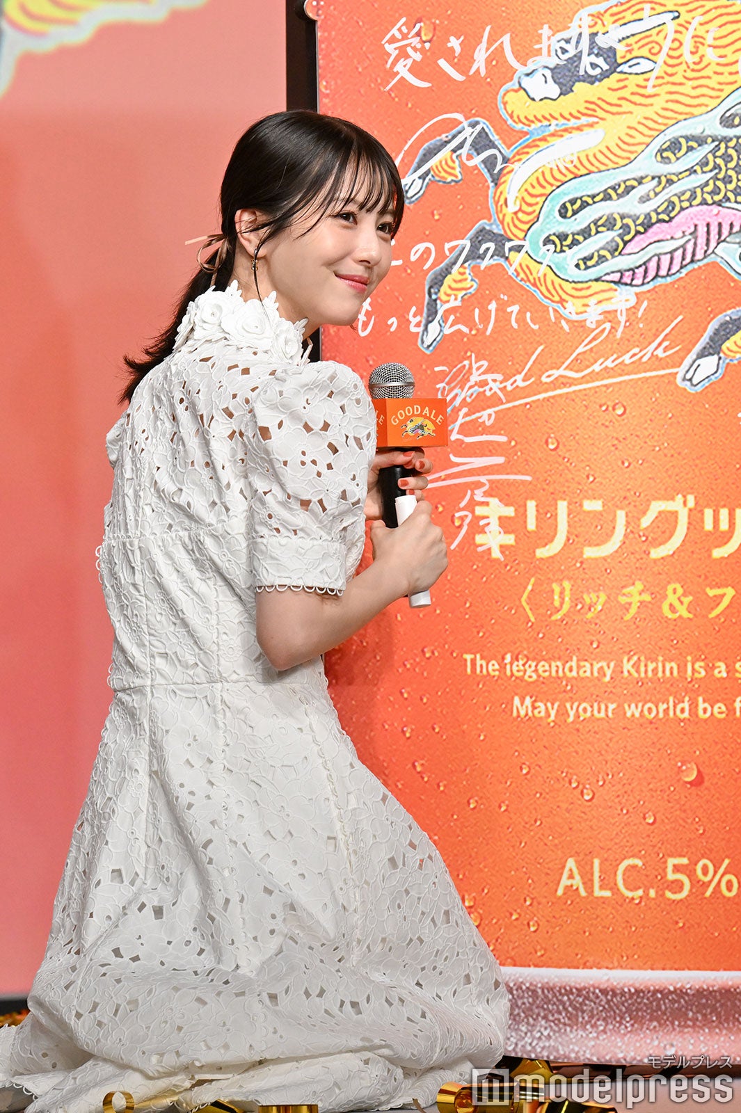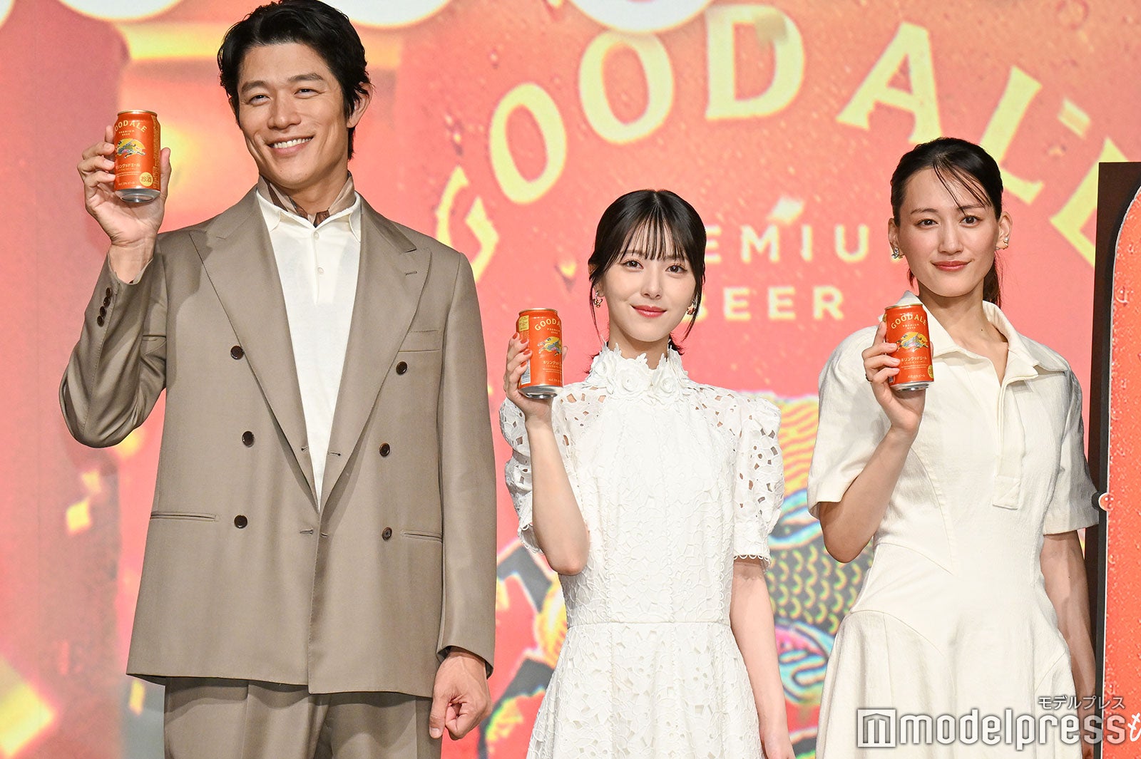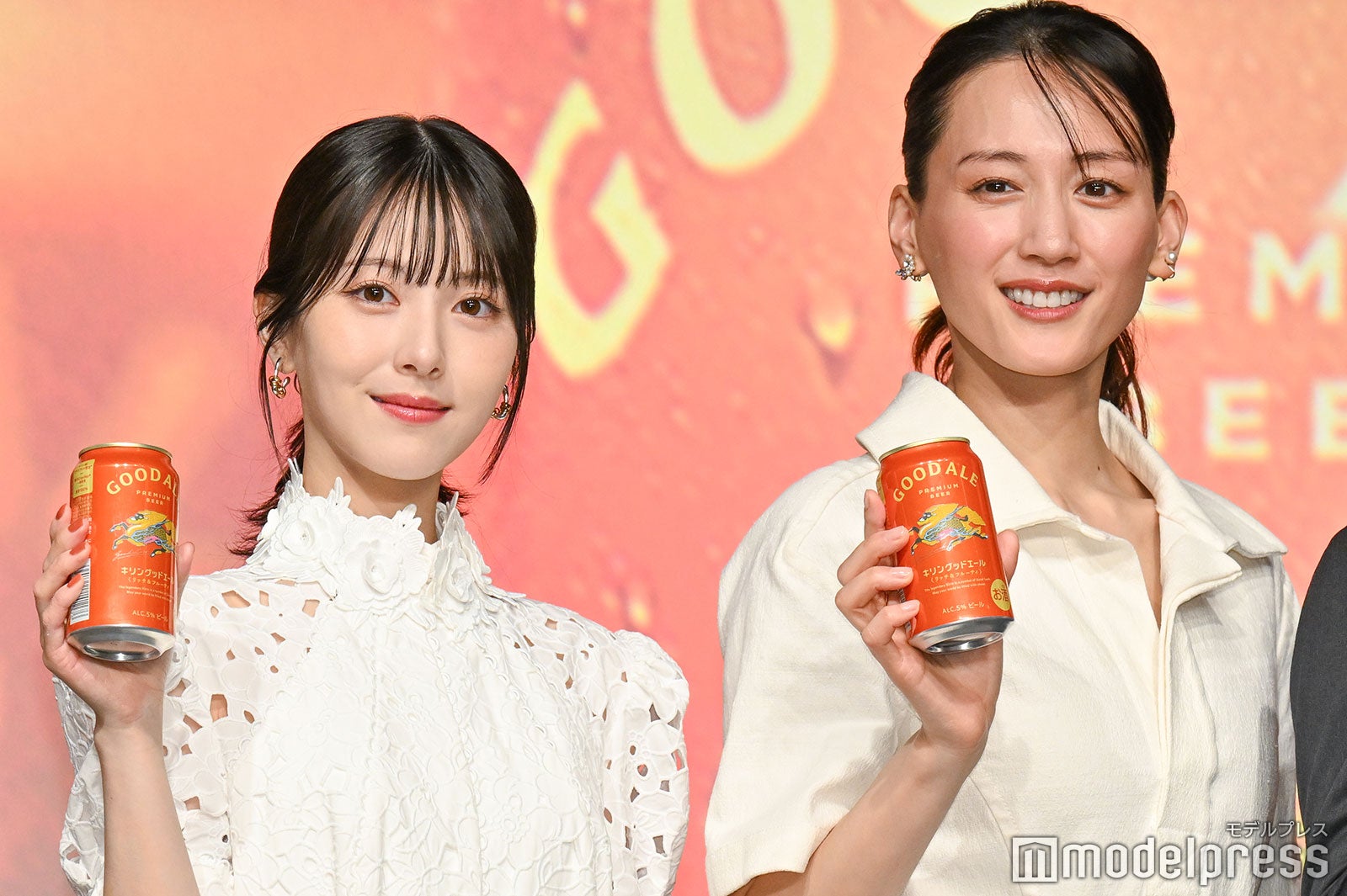 この日、解禁になった新CMの撮影現場の雰囲気を聞かれた綾瀬は「皆さんにお会いする機会が3度目とか4度目ぐらいになっていて、ちょっとずつ仲良くなってきた感じがありましたよね(笑)」と笑顔を見せ、「なので、(撮影の)間は冗談を言い合ったりとか、みんなで盛り上がって、その雰囲気がちゃんと映し出されている映像になっているんじゃないかなと思います」とコメント。そして、大森は「本当に和気あいあいと楽しく撮影させていただきましたね。綾瀬さんがすごくナチュラルで天然な方なので、それを僕もツッコミながらというか、そういうのが撮影にも実際に生きていますし、撮影をしてるっていうよりか、皆さんと楽しくおしゃべりしてたら撮影されちゃってたみたいな、すごくナチュラルな時間だった気がします」と振り返った。また、CMでも披露した“大歓喜ポーズ”をする一幕も。しかし、レクチャーを任された鈴木をはじめ、綾瀬。浜辺もあまり覚えていない様子。そこで、大森は代わりにレクチャーしつつ「大丈夫ですか、皆さん。撮影したよね」とツッコんだ。鈴木は、大森のレクチャーを受け「そうだそうだ」と想起。浜辺が「(回す手は)上からでしたっけ?下からでしたっけ?」と首を傾げると、同ポーズを考案したという綾瀬は「下じゃないですか!?」「右足は後ろでしたけ!?」と和気あいあい。MCから「ものすごく不安になっているんですけど大丈夫ですか?」と声が飛ぶと、鈴木は「大丈夫です。僕らのチームワークはすごいですから。チームワークがすごすぎて、さっき袖で『うるさい』って怒られたんですから」と裏話を披露して会場の笑いを誘っていた。(modelpress編集部)