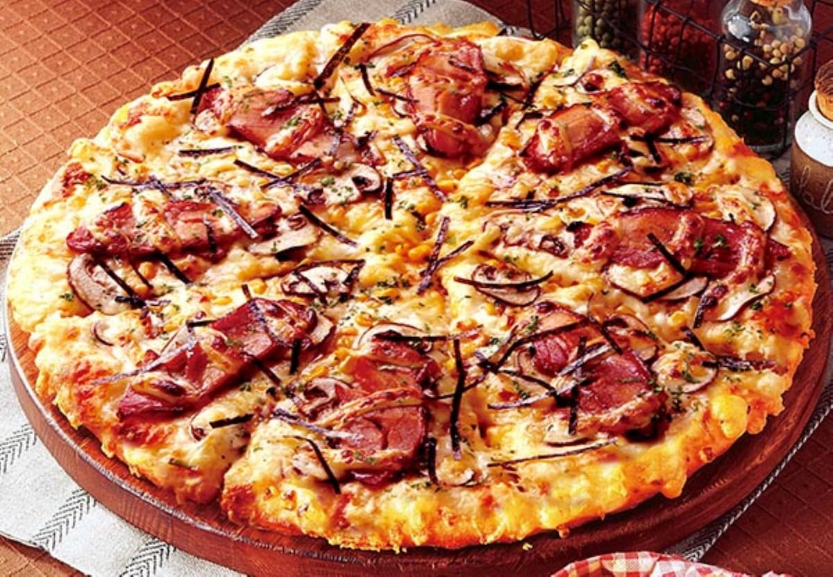 「PIZZA-LA」の「ダブルテリチキ」(700円)ほか 気になるグルメは、名古屋の名物店「味仙 台湾ラーメン」や、売り切れ御免の肉料理を提供する「肉焼総本家三輪」、中崎町の人気焼き芋店「蜜香屋」など、ご当地フードからスイーツまで40店舗が集結。