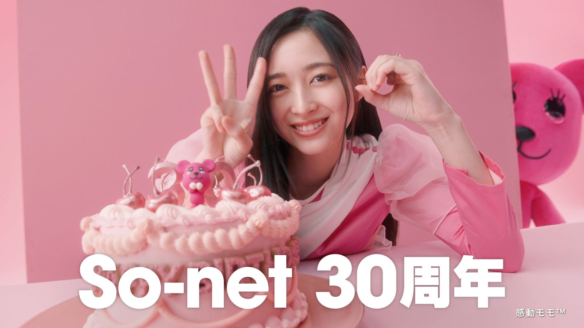同サービスが開始30周年を迎えたことを記念し、乃木坂46との「乃木坂 46×So-net 第2弾」を3月12日より開始。ブランドタグライン「ソニーグループの感動を、届けるネット So-net」に込めた想いをもとに、乃木坂46の新CMやフォトカードをプレゼントするキャンペーンを通して、感動を届ける。「So-net」30周年を記念して制作した今回のCMでは、「So-net」公式キャラクター・感動モモの指揮のもと、乃木坂46メンバーがハッピーバースデーを合唱。途中から早口になる歌詞を”涼しい顔で歌い上げる”メンバーを見ることができる。全8本のCM撮影では、終始楽しそうに撮影へ臨むメンバーの様子が。久しぶりの感動モモとの再会を喜ぶ遠藤・賀喜・井上と、初対面で感動モモの可愛さや全力ぶりに驚く池田・川崎のそれぞれの反応がうかがえ、その様子がメイキングムービーに収められている。各動画のナレーションは大塚明夫氏が担当している。