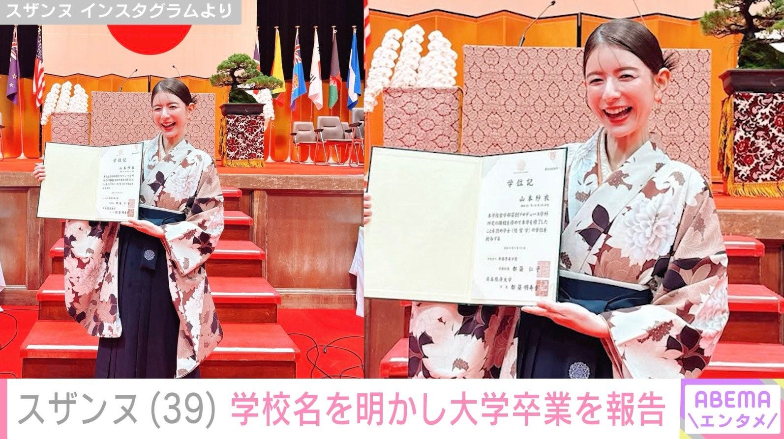 シングルマザーのスザンヌ(39)、学校名を明かし大学卒業を報告 袴姿を披露「無理かもと思う日は…何度もありました」