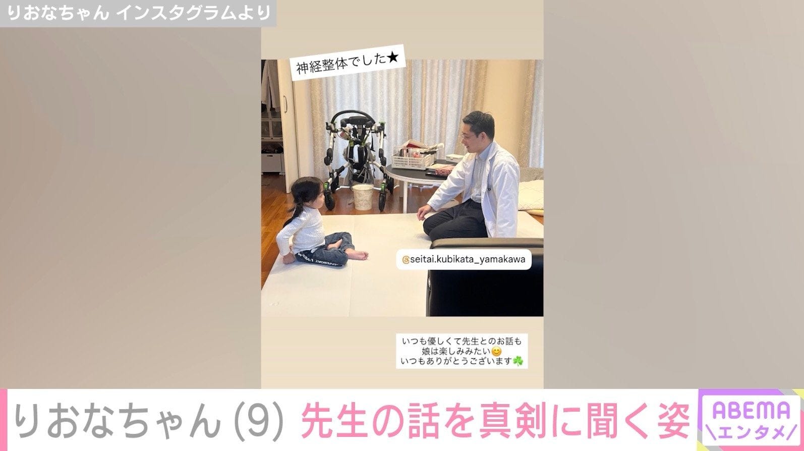 11日に更新したInstagramのストーリーズでは、「神経整体でした。いつも優しくて先生とのお話しも娘は楽しみみたい」とつづり、真剣なまなざしで先生と会話するりおなちゃんの最新ショットを公開した。