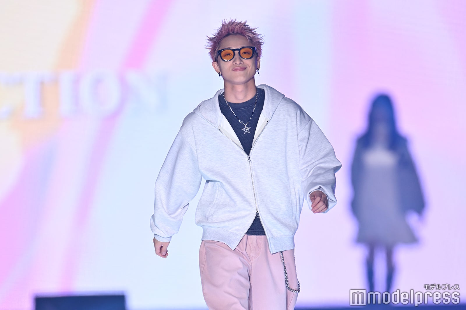 ピンクのパンツにホワイトのパーカーを合わせて登場した高尾。トップではサングラスを外して会場を沸かせ、次にランウェイを歩くメンバーのもーりー(森英寿)とグータッチをして会場を後にした。「マイナビ TGC2026 S/S」テーマは「OUR CANVAS」