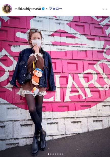 西山は「会いたかった子に会いに」とつづり、娘たちと市川市動植物園を訪れた際のプライベートショットを「#パンチくん」などのハッシュタグを添えて投稿。裾からレースがのぞく超ミニのニットワンピースにデニムジャケットを羽織り、長い脚が際立つ透け感のある黒いタイツを履いた姿を披露した。そのほか、お目当てだったというサル山の動画や牛舎の前に立つ自身の姿、フラミンゴの動画なども併せて見ることができる。また「帰り道のUFOキャッチャーに姉妹夢中 母はジョージぶら下げて帰宅」と記し、帰り道で思わぬ収穫があったことも明かしている。
