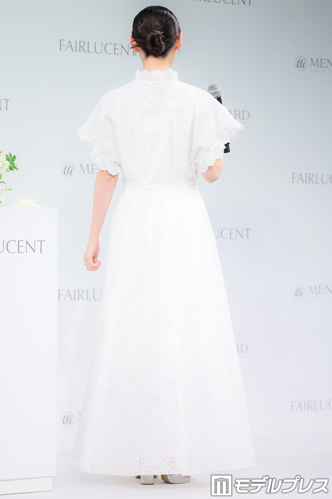 白のワンピースにシルバーのハイヒールを合わせたスタイリングで登場した白石は「ブライトニングということで、きらきらに、真っ白に仕上げてもらいました」と笑顔。ミューズ就任については「美容がすごく好きで、スキンケアをする時間も、一日の終わりに大切にしていた時間だったので、とても嬉しかったです。それと同時に、これからもお手入れを頑張っていこうと思いました」と喜びを語った。この日は、白石がメナードから花束を贈呈されたほか、書道経験者であることから、銀の墨で書いた美文字を披露する一幕もあった。事前に書いた文言に自分の名前を添えて仕上げた白石は「久しぶりに筆を握ったので、ちょっと緊張しました」と笑顔を見せていた。