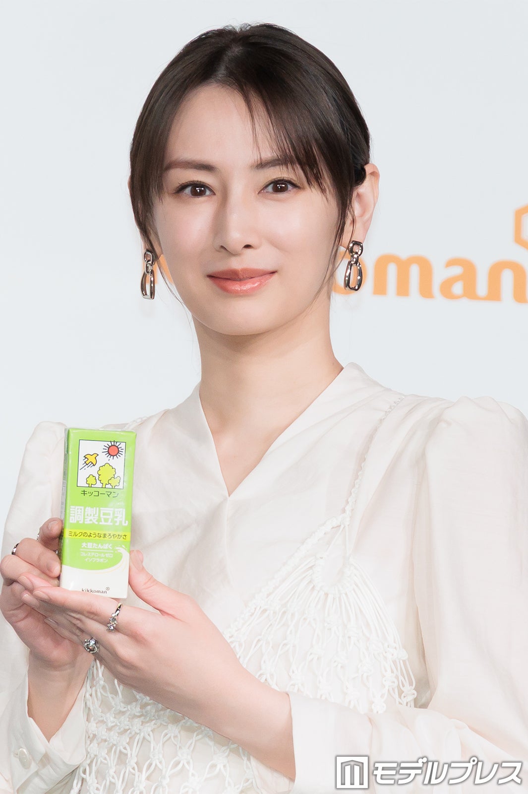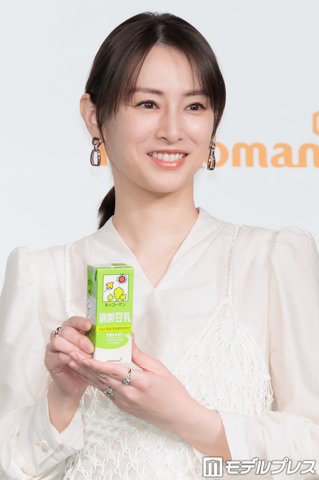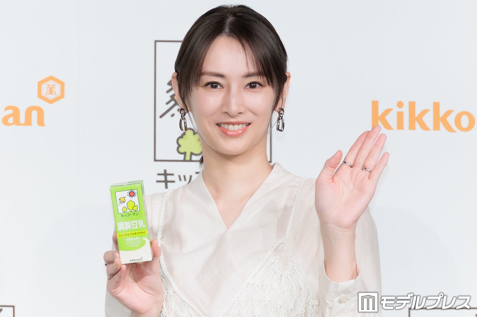 北川は豆乳について「すごく綺麗な先輩が『美容と健康のために飲んでいる』と言って飲んでいるのを見て、『自分も飲もう』と思って、それから毎日飲んでいる」と告白。「最近ではジムの先生から『プロテインの粉と混ぜて飲むのがいいよ』とお勧めしていただいて、4、5年は毎朝プロテインを豆乳で飲むというのが日課になっています」と続けた。「たんぱく質を摂ることが美しさの秘訣か」と問われた北川は「どうなんでしょう。でも本当に『綺麗な人が飲んでいるな』と思ったことから始まったことなので、『美しくなりたい』と思って飲み始めた」と説明。さらに「コロナ禍に出産をしたんですけれども、その時に家にいる時間が長くて、いろいろ自分の生活を見直していく中で栄養バランスとかも考えようと思って、それからたんぱく質の重要性をさらに感じるようになった」と打ち明けた。