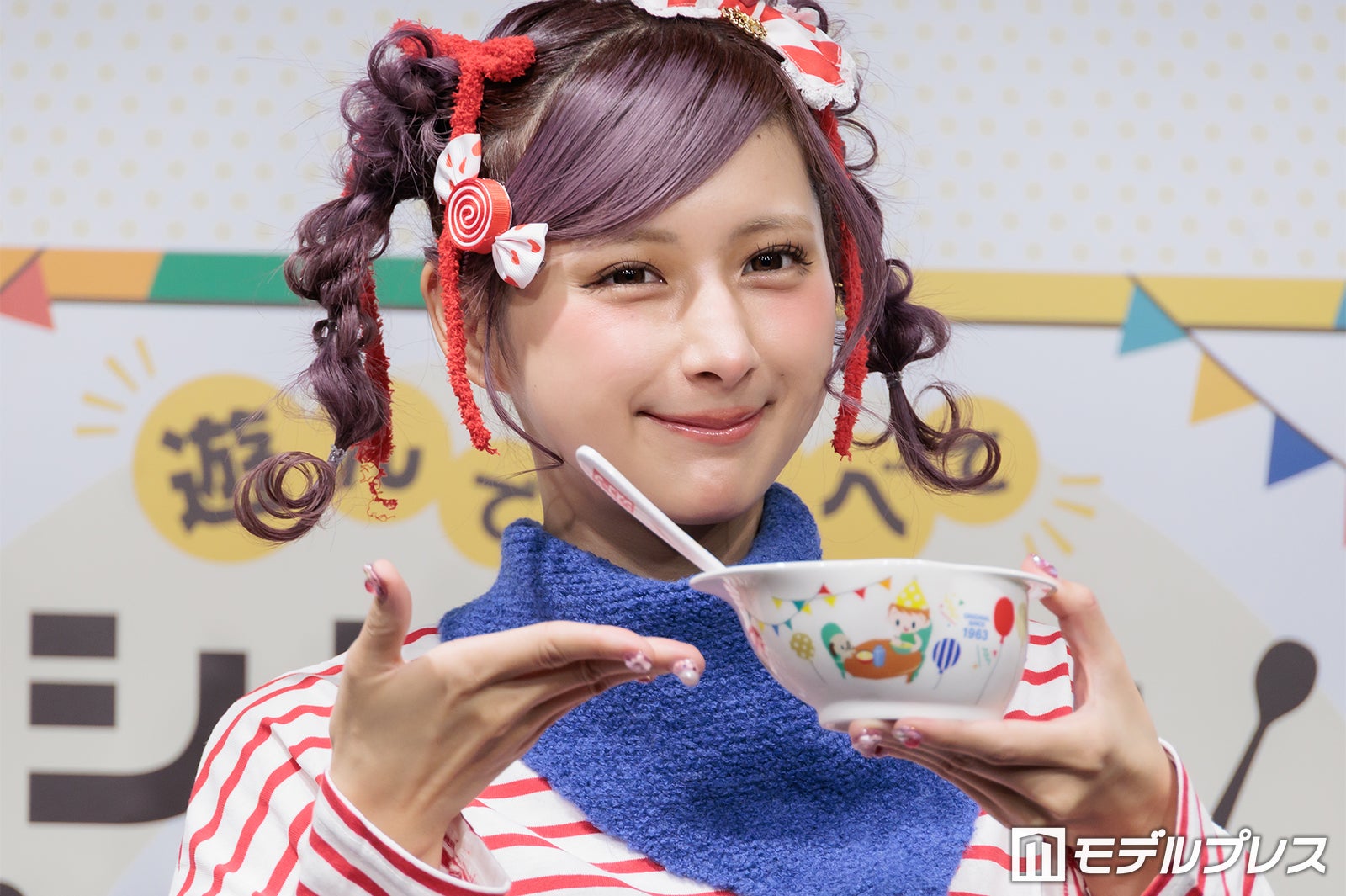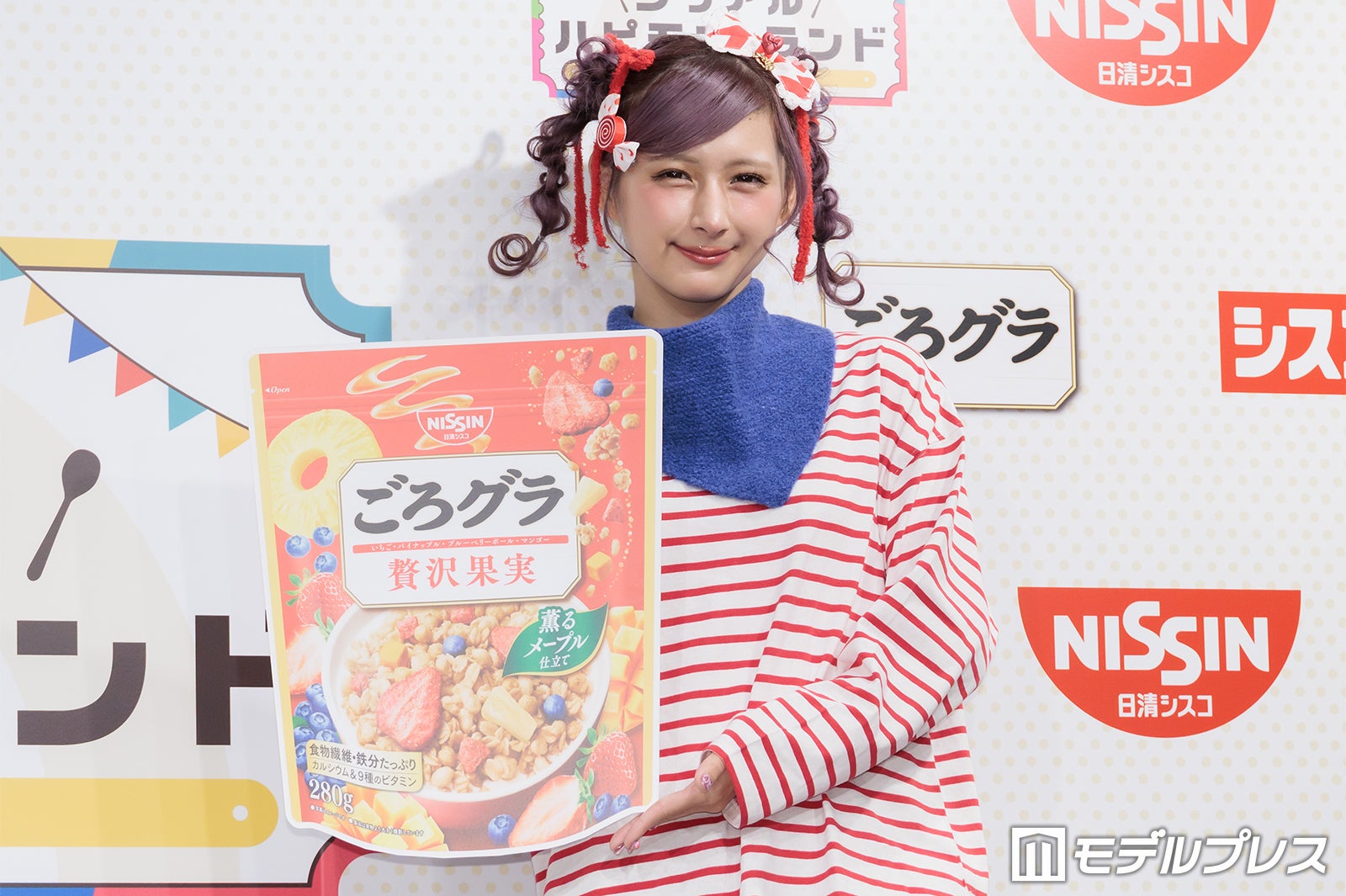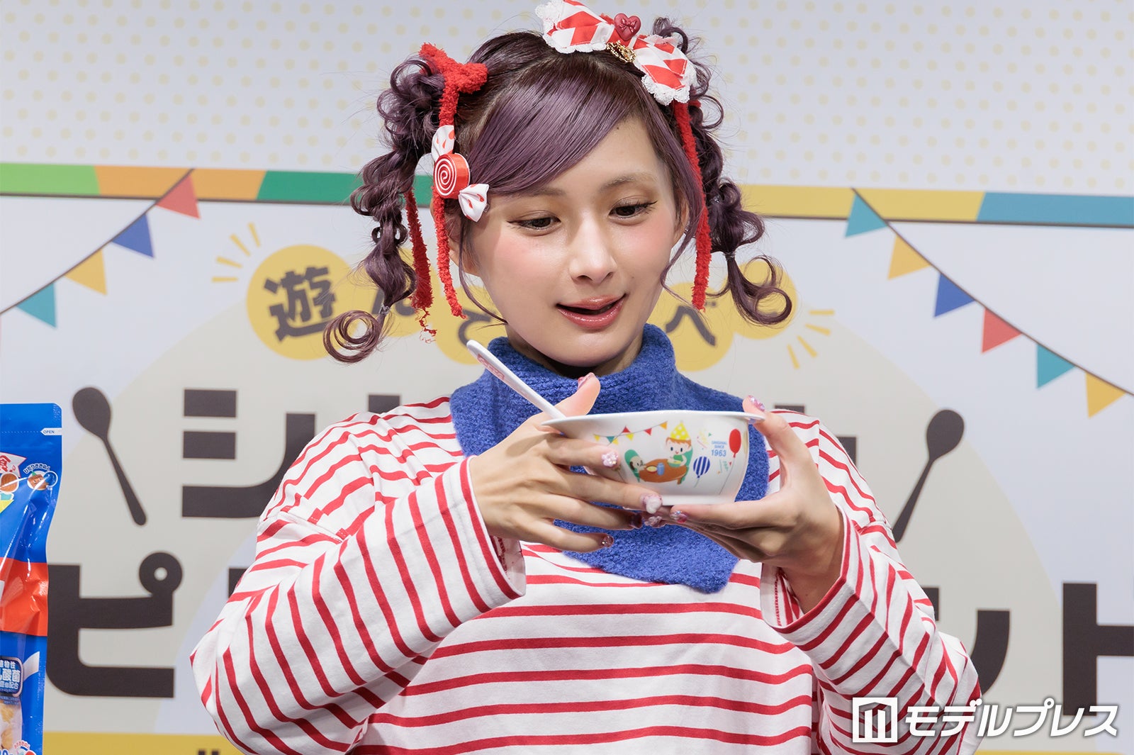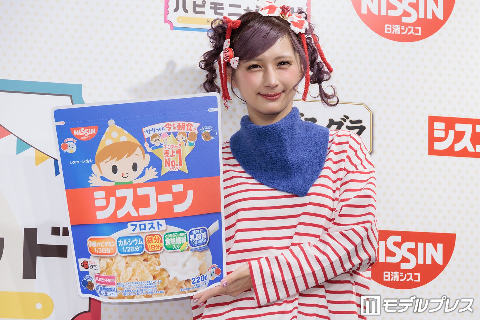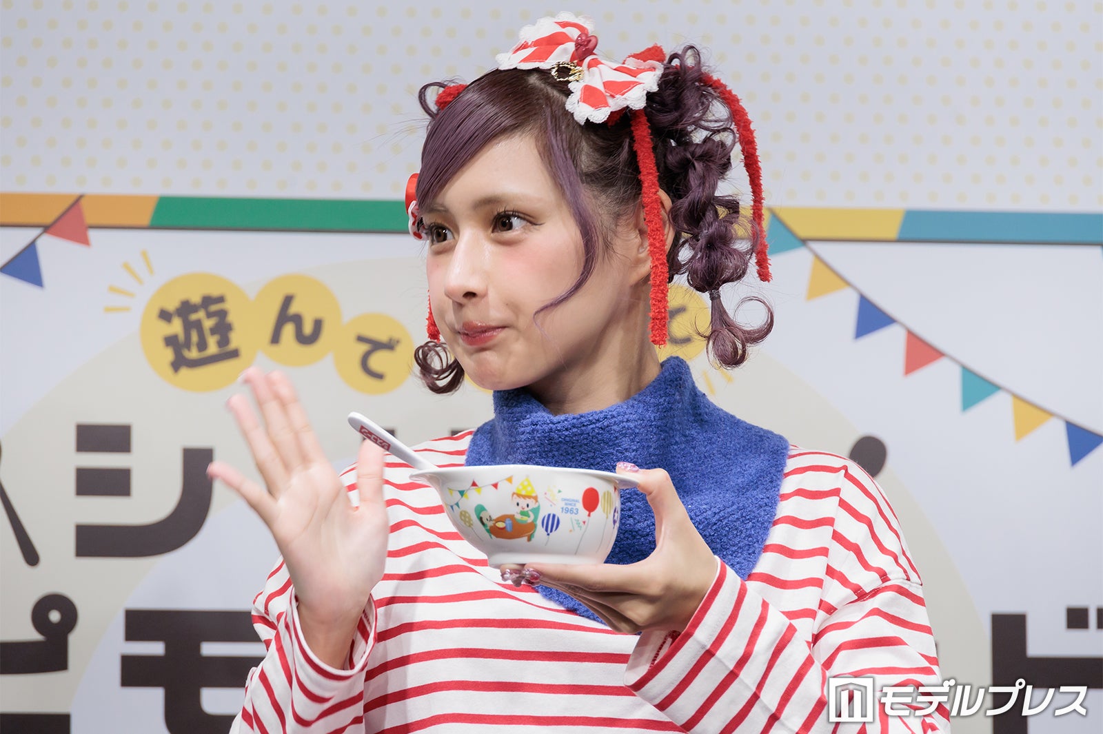 普段はピンクや紫の鮮やかな色使いが多いが、この日は商品をイメージしたという赤のボーダーTシャツ姿で登場したしなこは、登場すると同時にカメラに向かって様々なポージングを披露。「普段は着ないような系統なんですけど、自分で用意しました」と微笑んだ。朝の過ごし方を聞かれた際には「想像通りかもしれないですけど、本当にドタバタで計画性がない(笑)」と苦笑。そして「その中でも、ちょっとハッピーになれるような、気分がちょっと上がるようなことを取り入れたりとかもしています」と明かし、「ドタバタなんですけど、朝ごはんだけは必ず食べています」と語った。