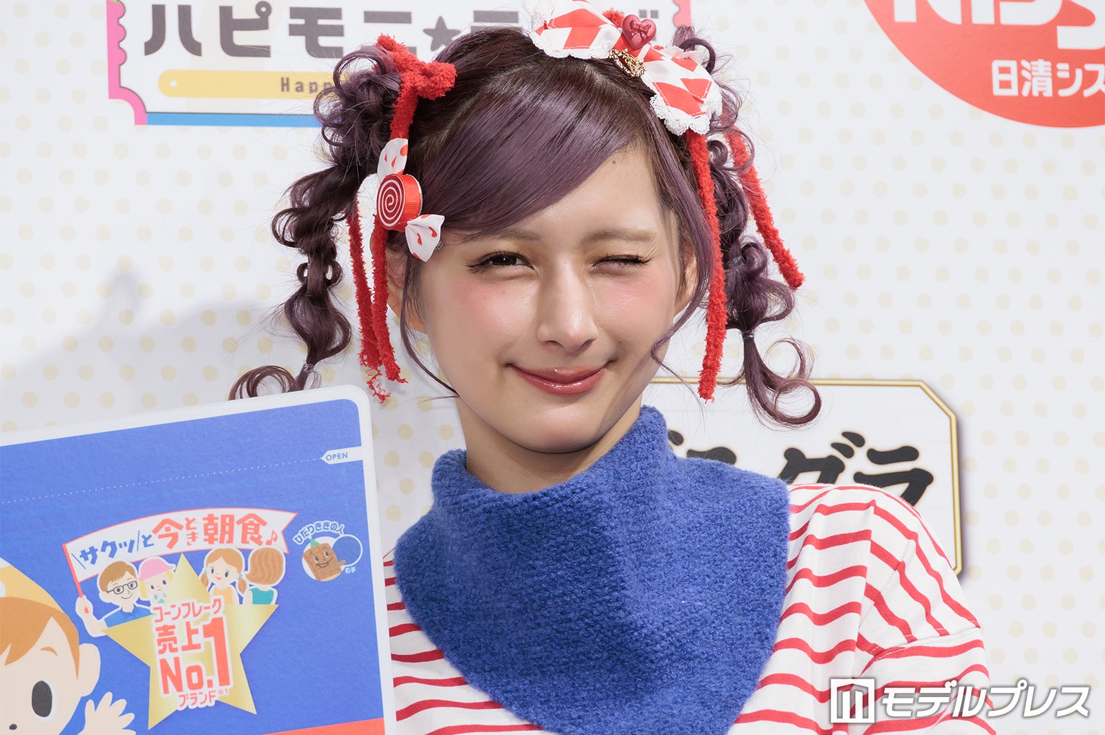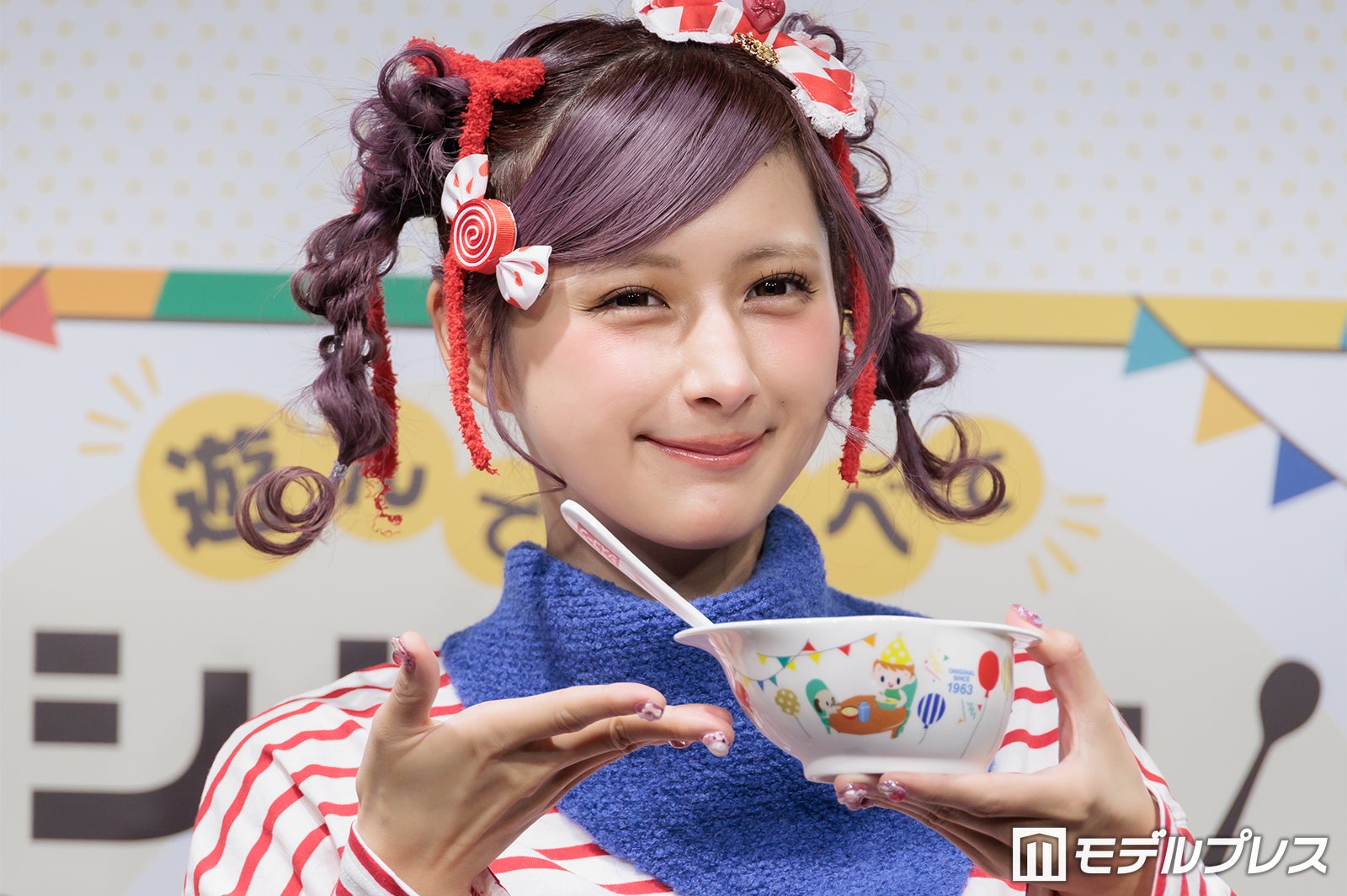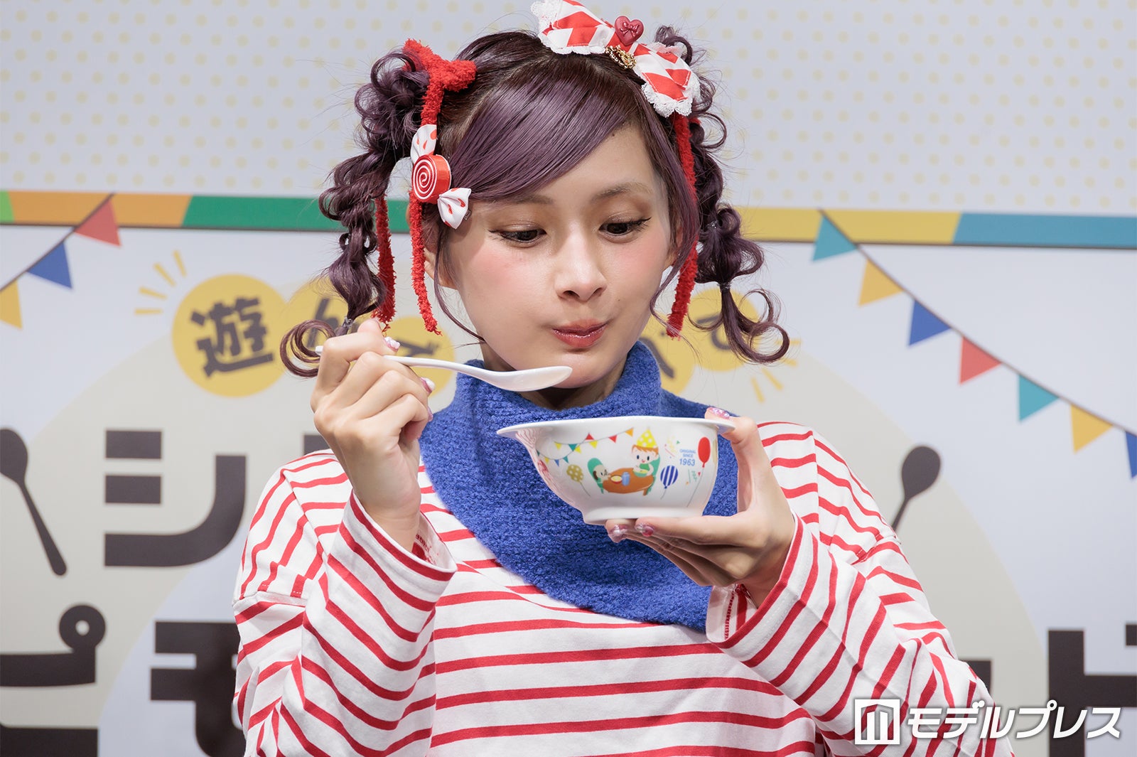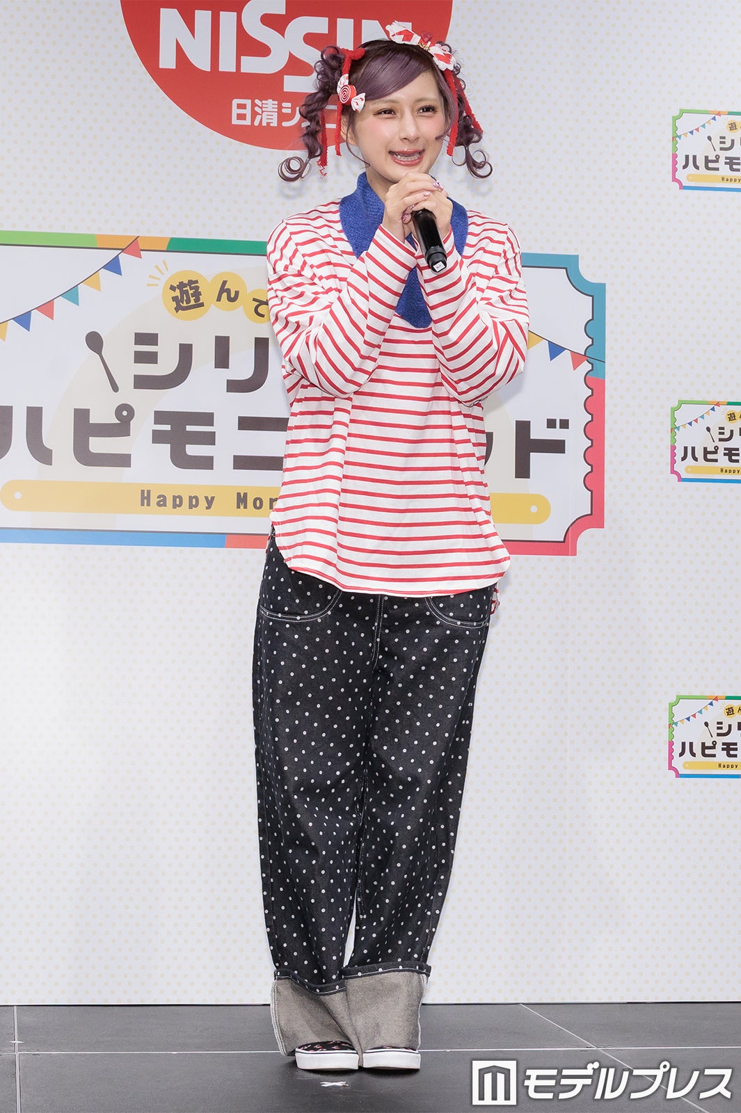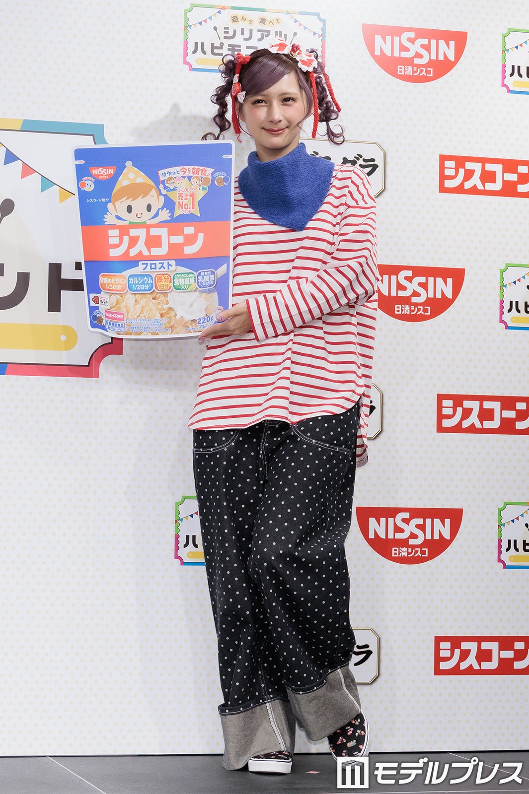 普段はピンクや紫の鮮やかな色使いが多いが、この日は商品をイメージしたという赤のボーダーTシャツ姿で登場したしなこは、登場すると同時にカメラに向かって様々なポージングを披露。「普段は着ないような系統なんですけど、自分で用意しました」と微笑んだ。朝の過ごし方を聞かれた際には「想像通りかもしれないですけど、本当にドタバタで計画性がない(笑)」と苦笑。そして「その中でも、ちょっとハッピーになれるような、気分がちょっと上がるようなことを取り入れたりとかもしています」と明かし、「ドタバタなんですけど、朝ごはんだけは必ず食べています」と語った。