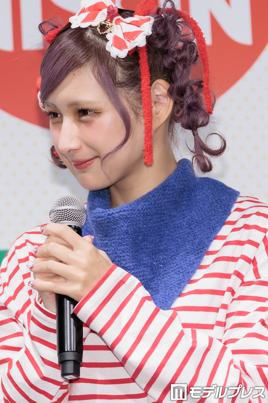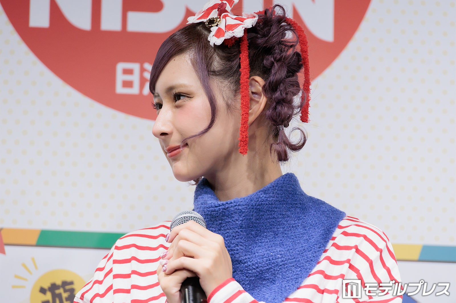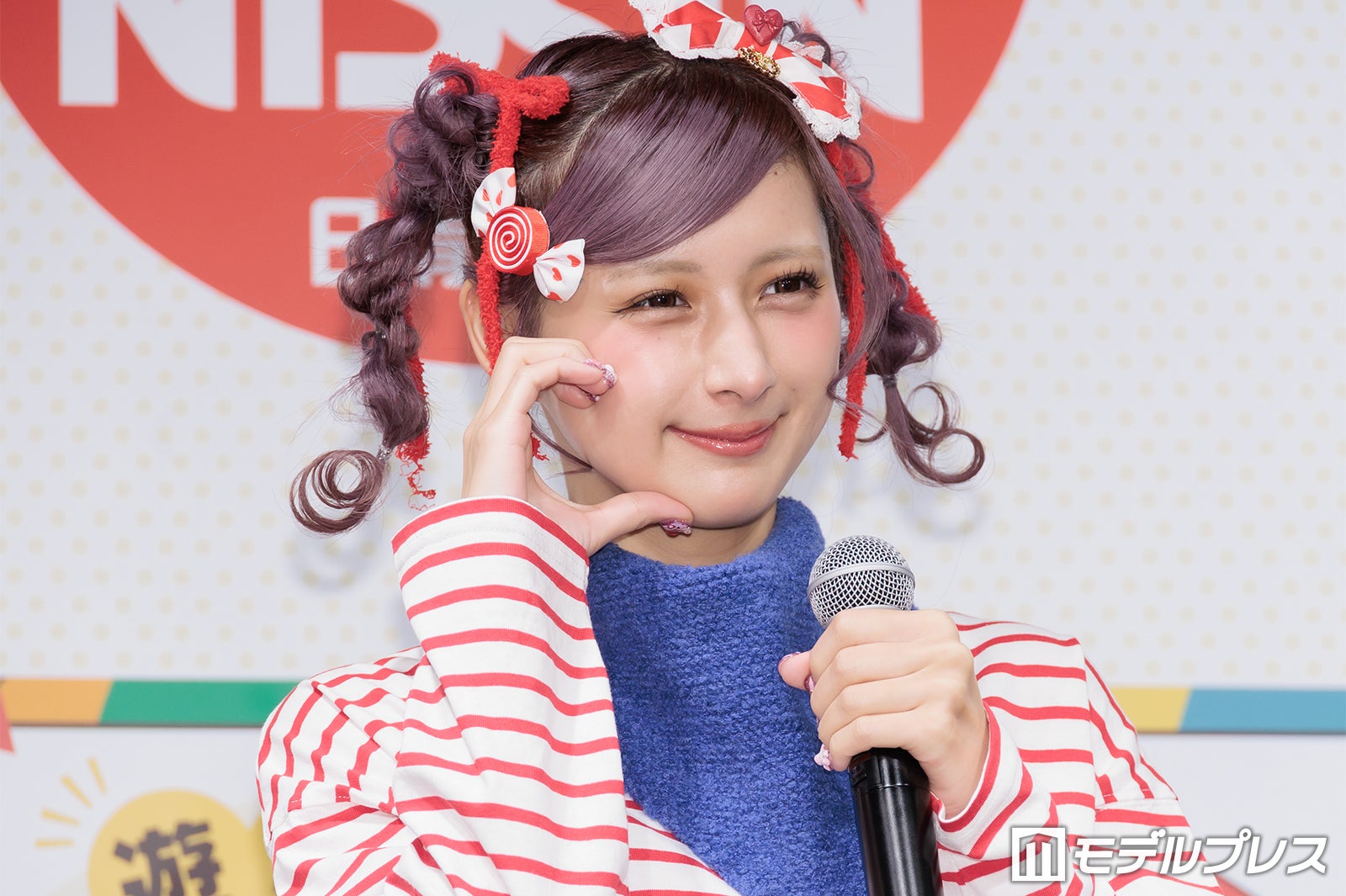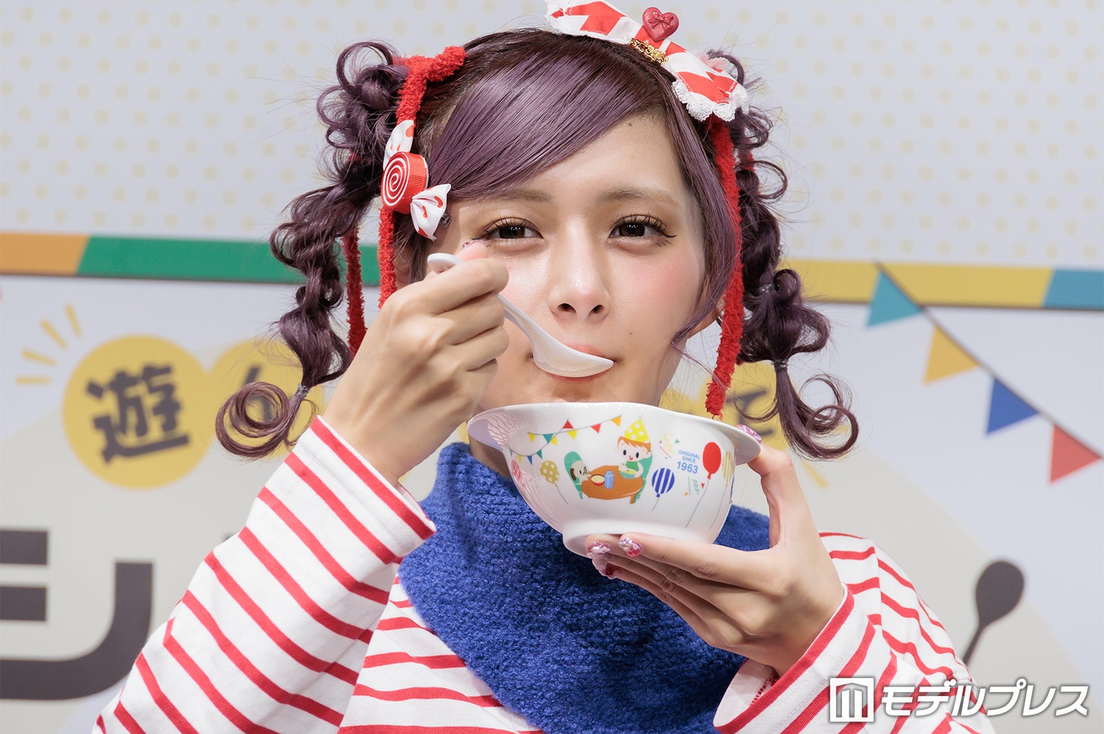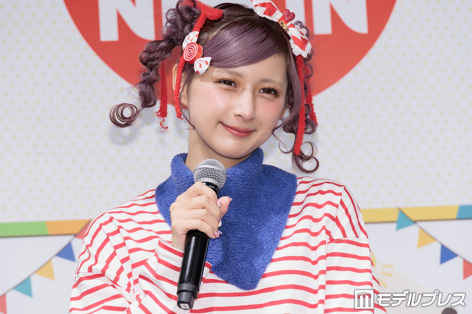 普段はピンクや紫の鮮やかな色使いが多いが、この日は商品をイメージしたという赤のボーダーTシャツ姿で登場したしなこは、登場すると同時にカメラに向かって様々なポージングを披露。「普段は着ないような系統なんですけど、自分で用意しました」と微笑んだ。朝の過ごし方を聞かれた際には「想像通りかもしれないですけど、本当にドタバタで計画性がない(笑)」と苦笑。そして「その中でも、ちょっとハッピーになれるような、気分がちょっと上がるようなことを取り入れたりとかもしています」と明かし、「ドタバタなんですけど、朝ごはんだけは必ず食べています」と語った。