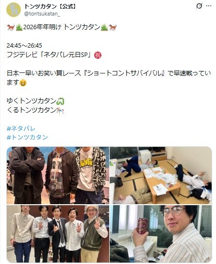 トンツカタンは森本、お抹茶、櫻田佑の3人で2012年に結成。2016年「第7回お笑いハーベスト大賞」で優勝、2022年には「第9回NHK新人お笑い大賞」にて決勝進出した成績を持つ。さらに、お抹茶は「R-1グランプリ2026」にてファイナル進出していた。(modelpress編集部)