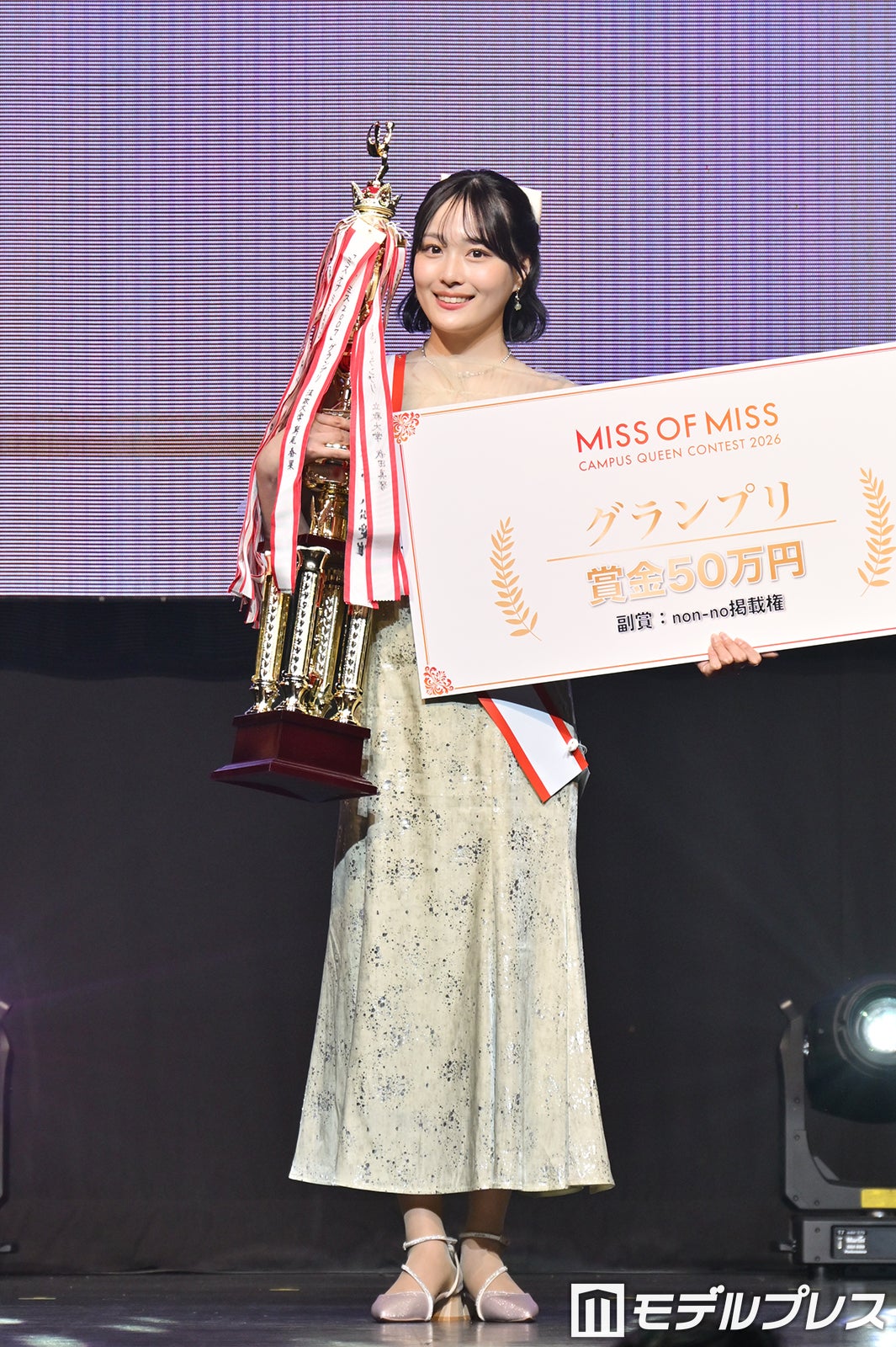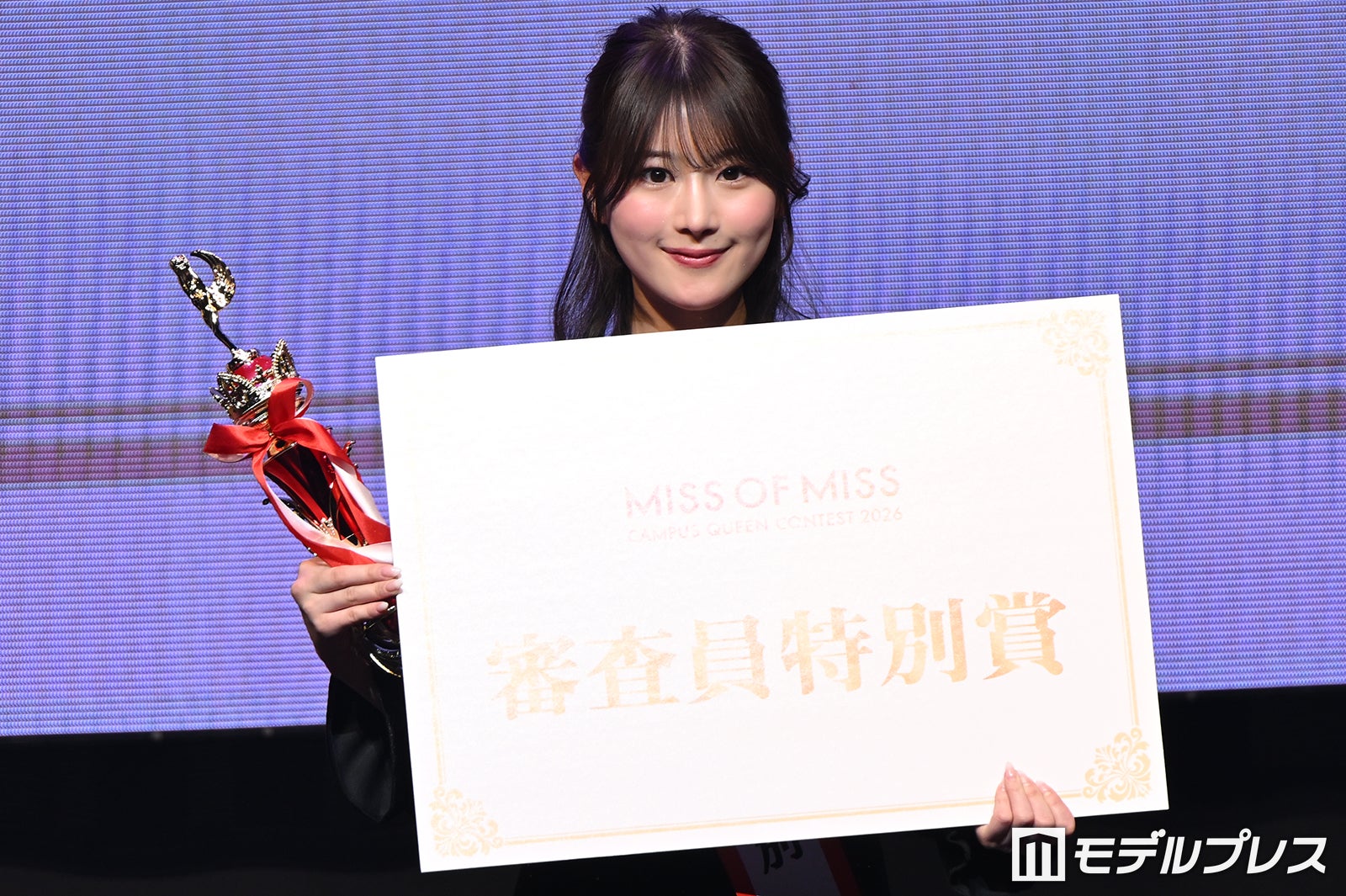 全国のミスキャンパスの中から日本一のミスキャンパスを決めるコンテスト「MISS OF MISS CAMPUS QUEEN CONTEST 2026」の表彰式が3月27日、Zepp Shinjuku(TOKYO)にて開催。関西学院大学・社会学部3年の田中葵(たなか・あおい)さんがグランプリに輝いた。