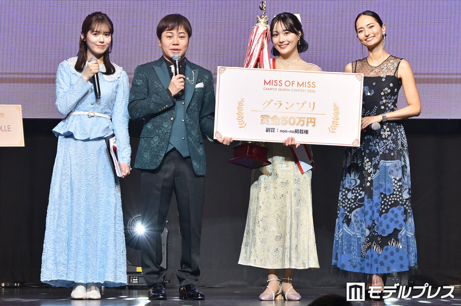 同コンテストは、全国の大学で2025年度に開催されたミスコンテストにてグランプリ・準グランプリを受賞した人が出場可能。2003年度より開催され、今回で23年⽬を迎える。昨年度グランプリは橋本菜々子(成蹊大学)。過去出⾝者には杉浦友紀(NHKアナウンサー)、伊藤弘美(フリーアナウンサー)、福⽥萌(タレント)、⼭形純菜(TBSアナウンサー)、⻄澤由夏(ABEMAアナウンサー)、⼭賀琴子(モデル・ブランドディレクター)、海⽼原優⾹(フジテレビアナウンサー)、楫真梨子(ファッションエディター)、伊藤愛真(タレント)、黒⼝なつ(タレント)、福地礼奈(NHK福岡アナウンサー)、神⾕明采(タレント)等がいる。なお、全国のミスターキャンパスの中から⽇本⼀のミスターキャンパスを決める「MR OF MR CAMPUS CONTEST 2026」も同時開催。MCは井上裕介(NON STYLE)と谷尻萌アナウンサーが務め、ゲストとして過去受賞者でもある⼭賀琴⼦が出演した。(modelpress編集部)