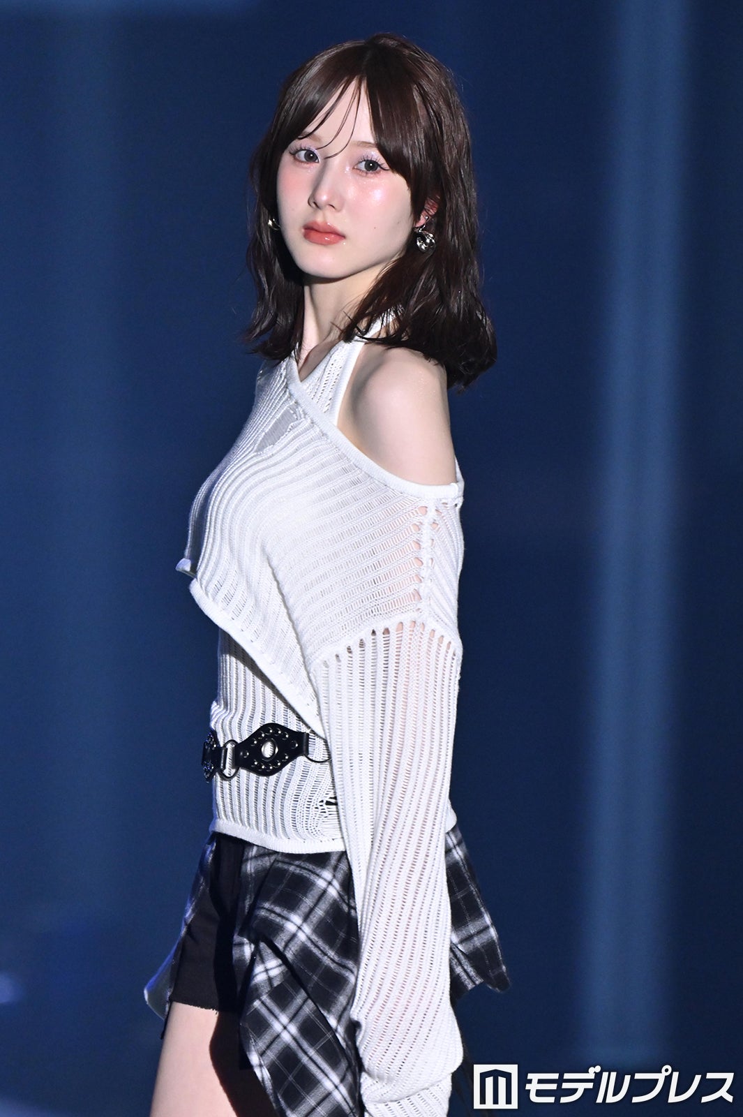 本田は、肩をのぞかせたざっくり編みのニットトップスに、チェックの装飾が施されたミニ丈ボトムス姿で美しいスタイルや素肌を披露。ランウェイでは笑顔を封印し、クールな表情で観客を魅了した。「超十代 -ULTRA TEENS FES- 2026」
