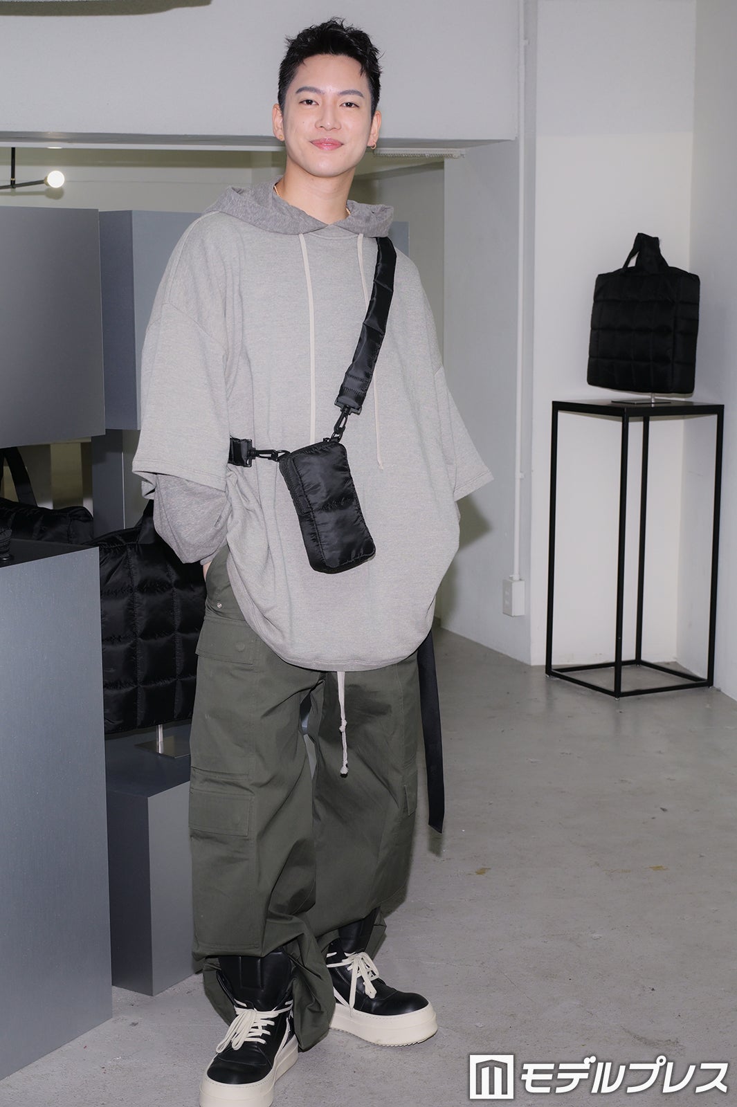 また「スタイリングであったり、デザイン、そして研ぎ澄まされた機能性っていうもの、全てを詰め込んだバッグが、このマスバッグになります」とアピール。「ある種の余白であったり、自分の人生を見つめ直すきっかけになる、最高のバディになればいいかなと、なってもらえたら嬉しいなと。そんな気持ちで皆さんにこのバッグを手に散ってほしい、手に取ってもらえたら、すごく嬉しいなと思いました」と語った。肩にかけられるタイプの小ぶりなバッグについて、哺乳瓶が入るのではないかと投げかけられると、「哺乳瓶が入ります(笑)。200ミリリットルの哺乳瓶がしっかり入ります」と笑顔。「哺乳瓶を最優先で考えたかって言ったら、話は変わるんですけど(笑)。そういった意味でいうと、ありがたいことにユニセックスでの展開なので、女性でも男性でも、どんな方でも使いやすい」と話していた。(modelpress編集部)
